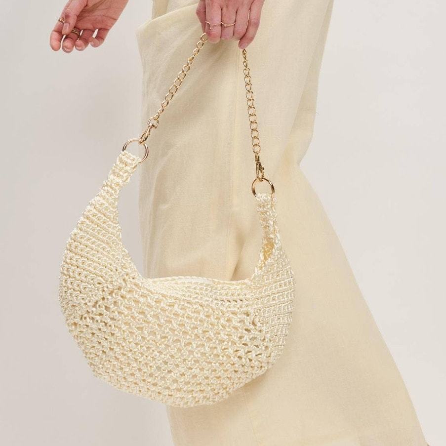 Soft Woven Soraya Chain Strap Shoulder Bag Ivory