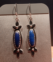 This lovely pair of earrings was handcrafted from Sterling silver and Lapis Lazuli. They Measure 1 1/4" in overall length and are 7/16" wide.