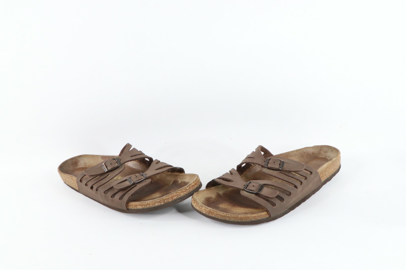 Vtg Birkenstock Womens 9 Distressed Suede Leather Web Strap Buckle Sandals Brown
