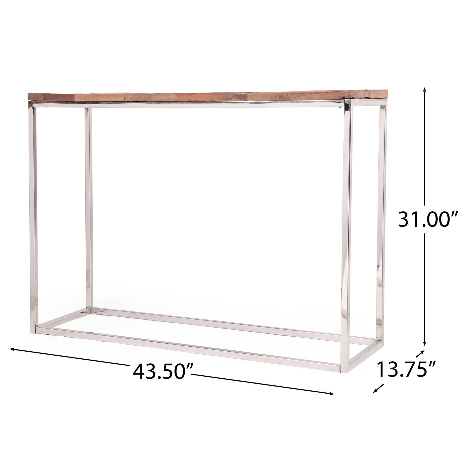 Boho Glam Console Table: Recycled Wood & Silver Stainless Steel
