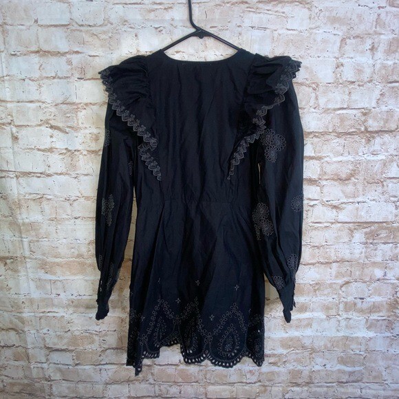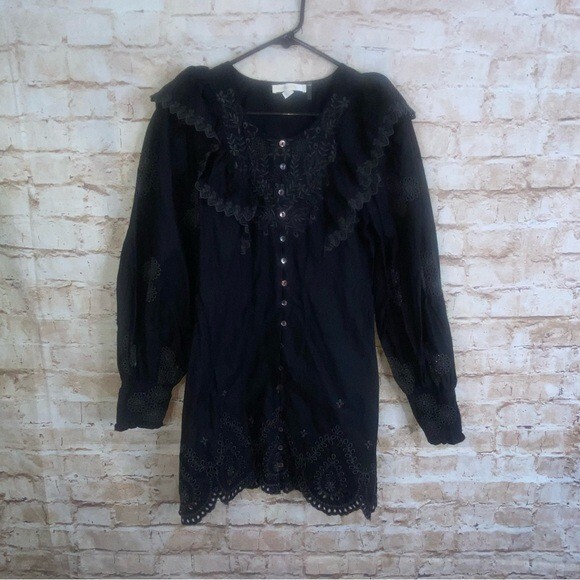 LoveShackFancy Tullia Embroidered Dress in Black Size 6