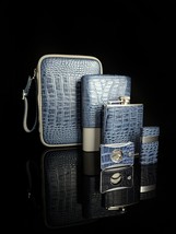 Brizard Blue Caiman & Grey Leather Traveler , Venezia Lighter & Elite Cutter