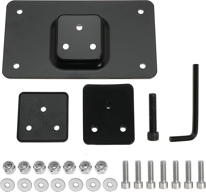 Fits: For 1973 Up Big Twins, Dynas, Sportsters,or any model with similar 3-hole bolt pattern Overall Size: 4''X7''. Mounting pattern: 1-1/4" across bottom;1-1/8" from either bottom hole to the top hole Performance: The two rubber spacers are used to control vibration and angle,allowing the angle of the mount to be raised or lowered as needed Package Included: License Plate*1 Rubber Gasket*2 and all necessary mounting hardware as picture show Note: If you have any questions, you can consult us. We are more than happy to solve your problems about the product