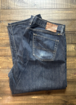 These men's Lucky Brand jeans in size 40 have a classic straight fit with a relaxed style. They feature a medium denim color and a short inseam of 25 inches. Made of cotton fabric, they offer comfort and easy care. The jeans also have pockets for convenience and are pre-owned.