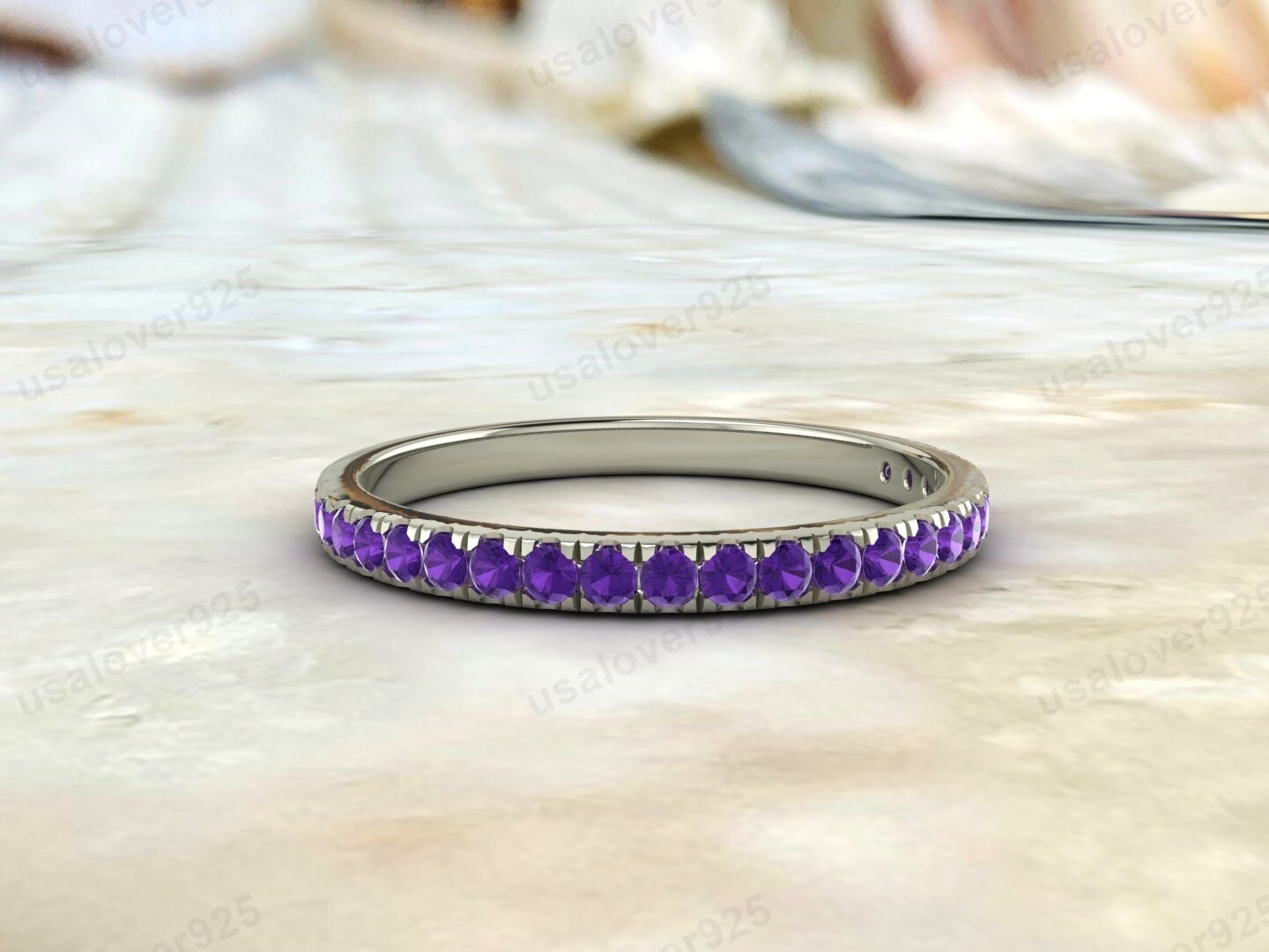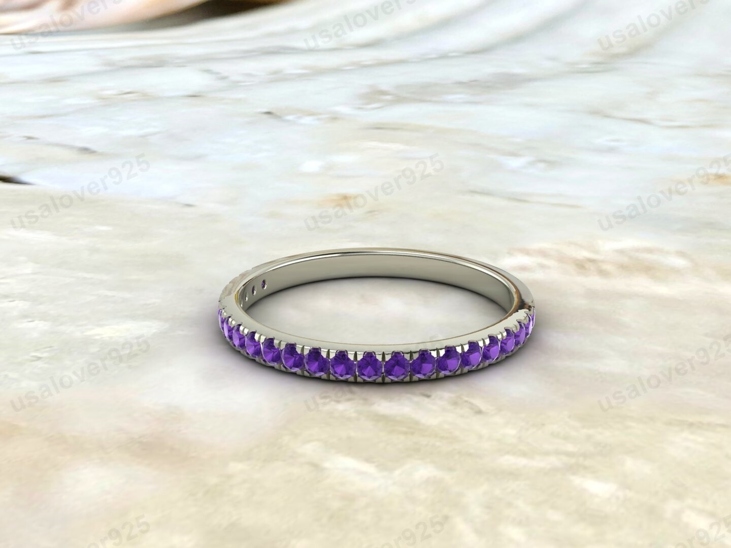 Amethyst Gemstone Half Eternity Women Band and 50 similar items