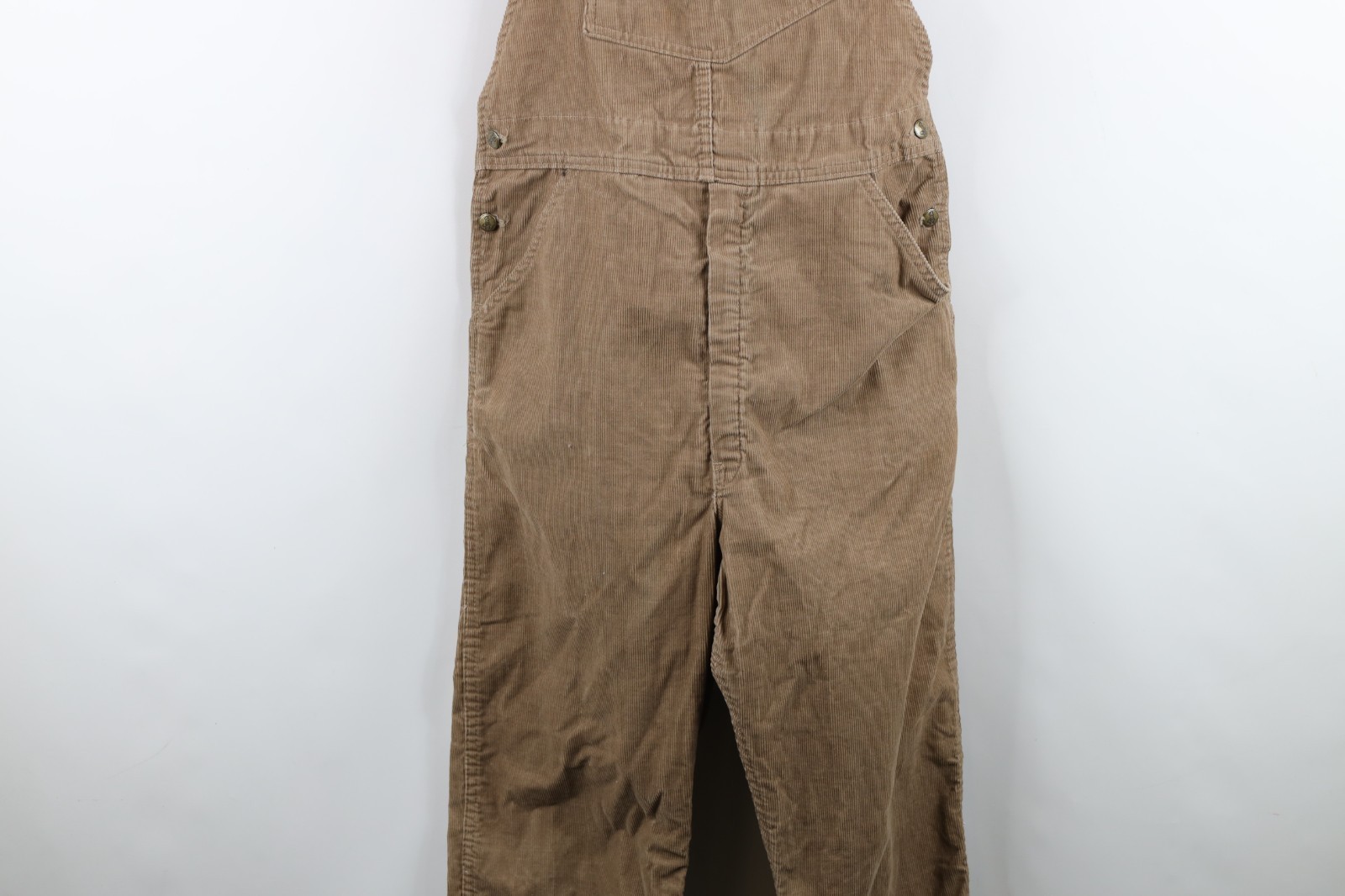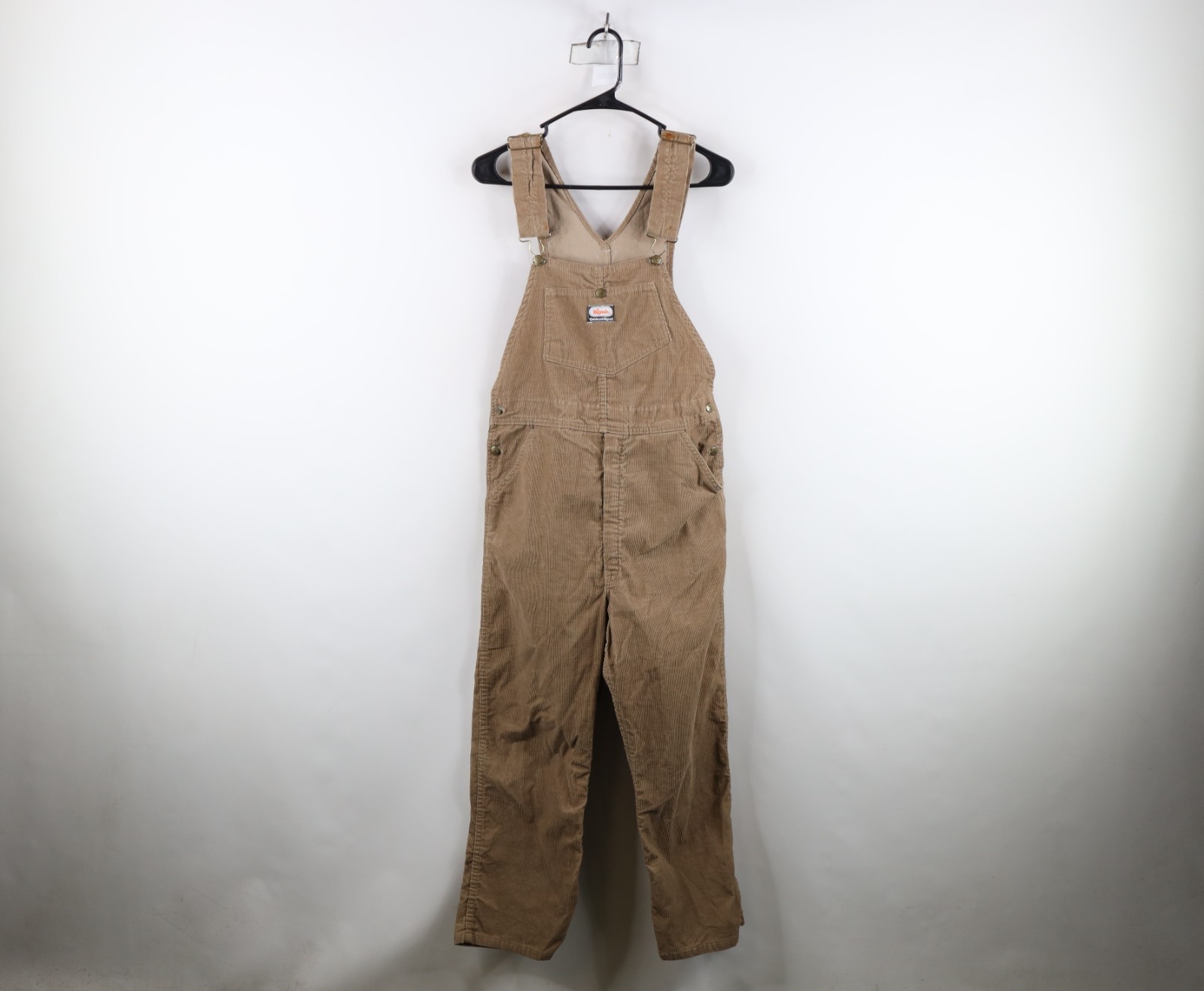 Vintage 70s Oshkosh B'Gosh Womens Medium Distressed Corduroy Overalls Brown USA