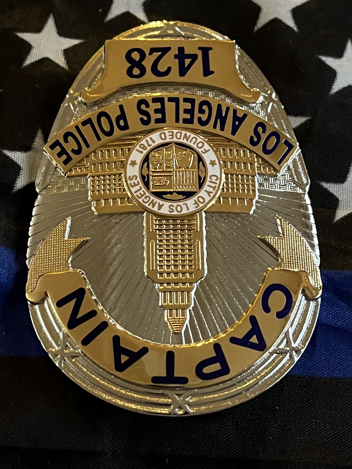 Los Angeles Police Department Captain. Hallmarked CH Metal Craft. Museum Quality 1 pc badge.
