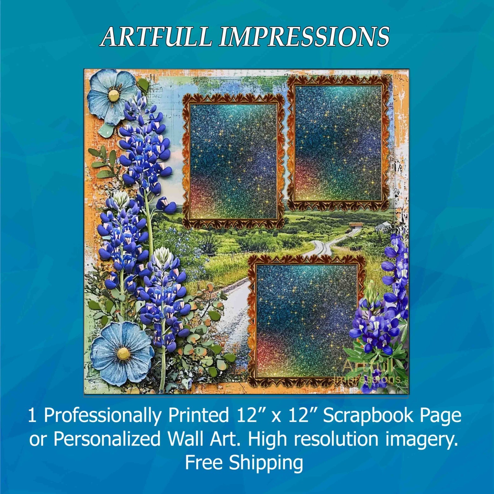 States -Texas Bluebonnet Trail Personalized Wall Art and Scrapbook Page
