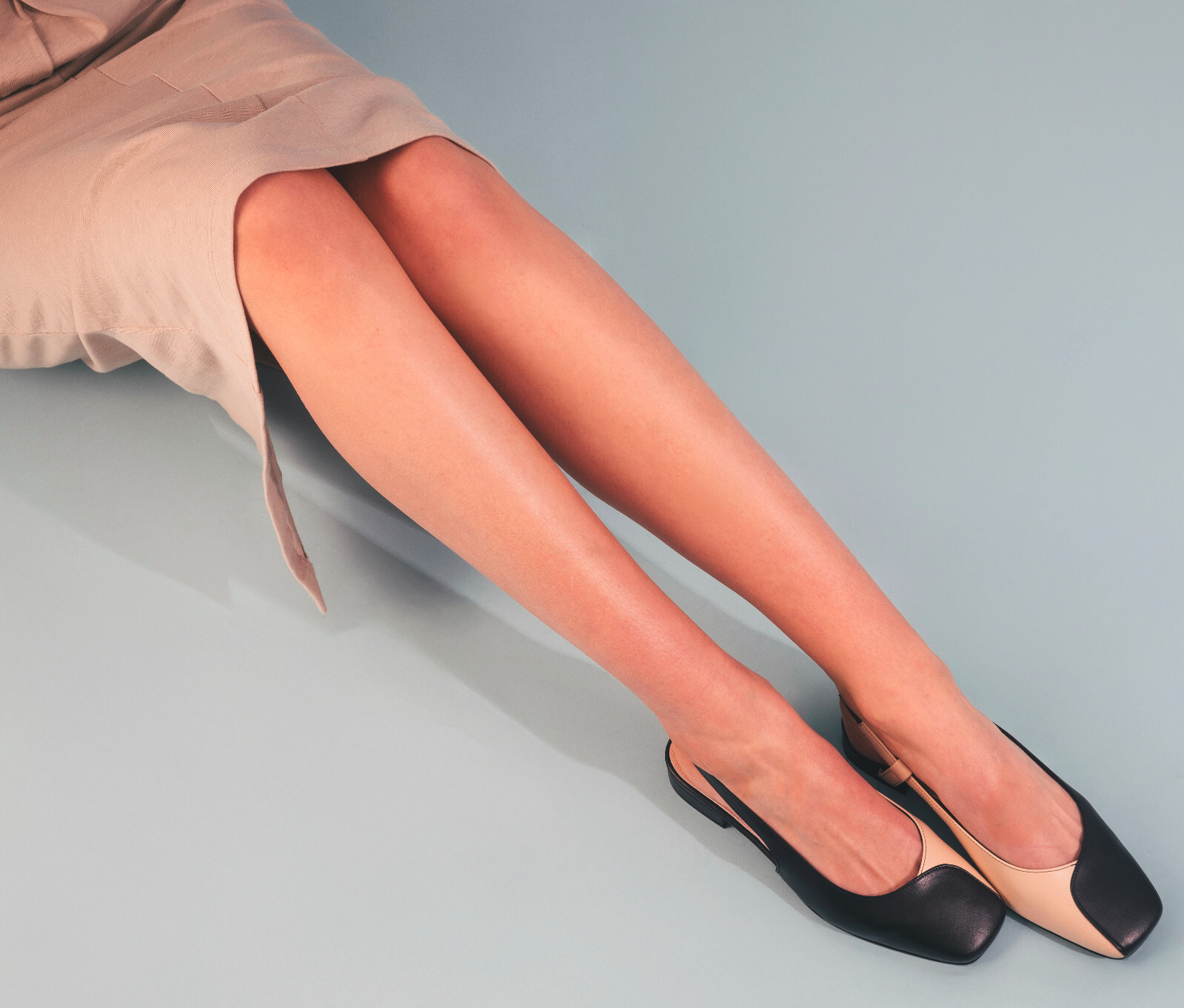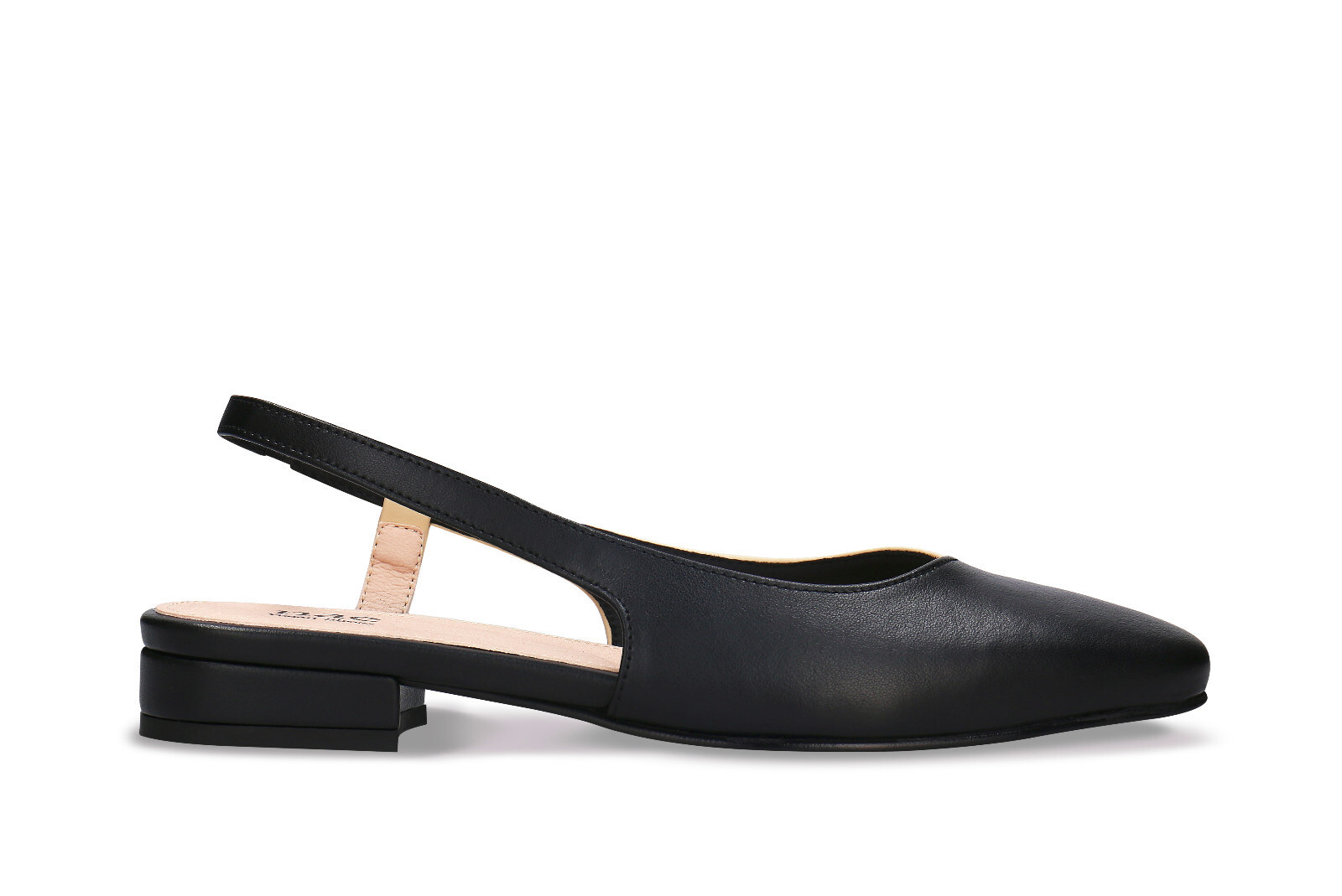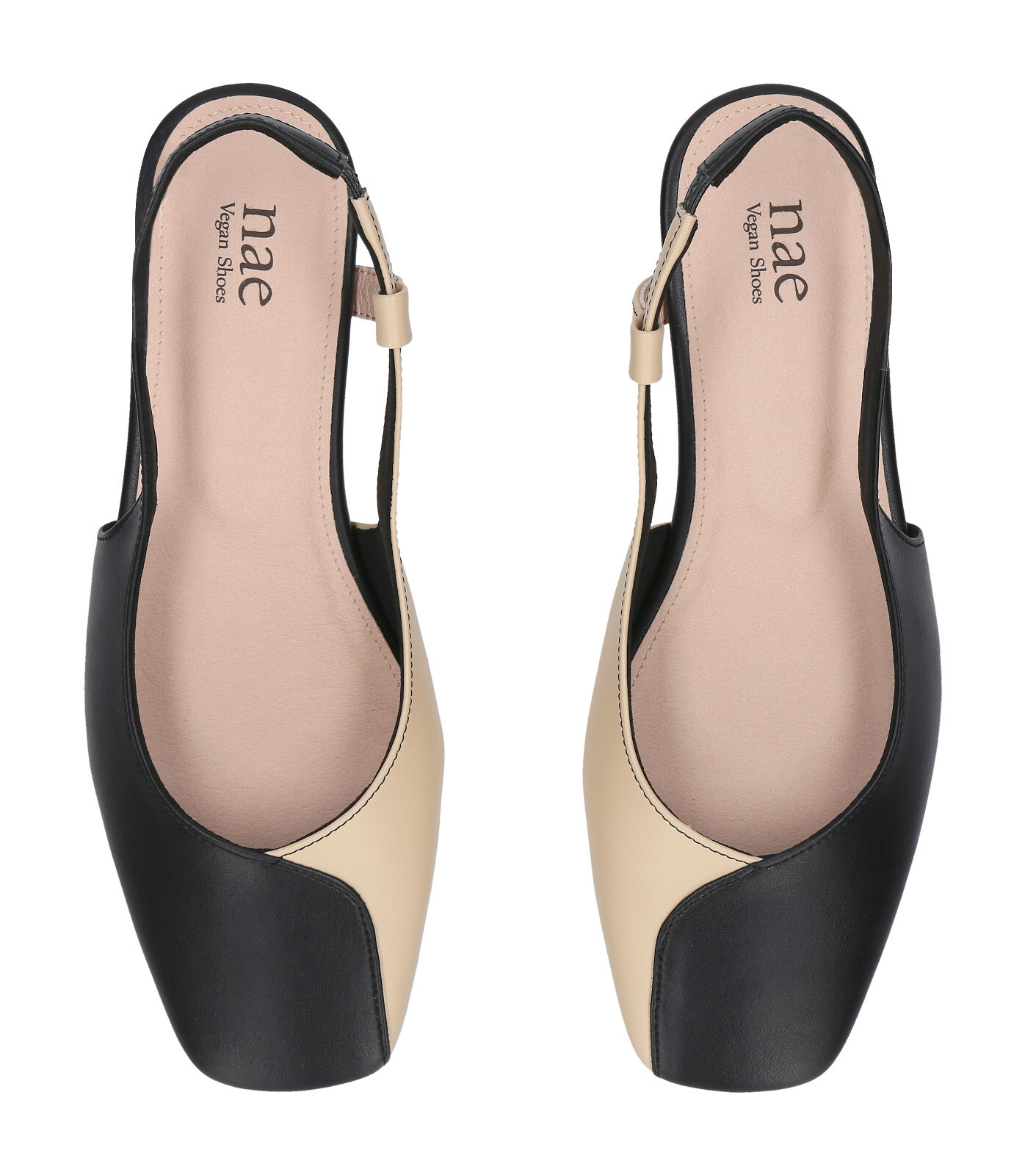 Flache vegane Damen-Slingbacks Schuhe aus veganem Leder Apfelhaut Schwarz Beige