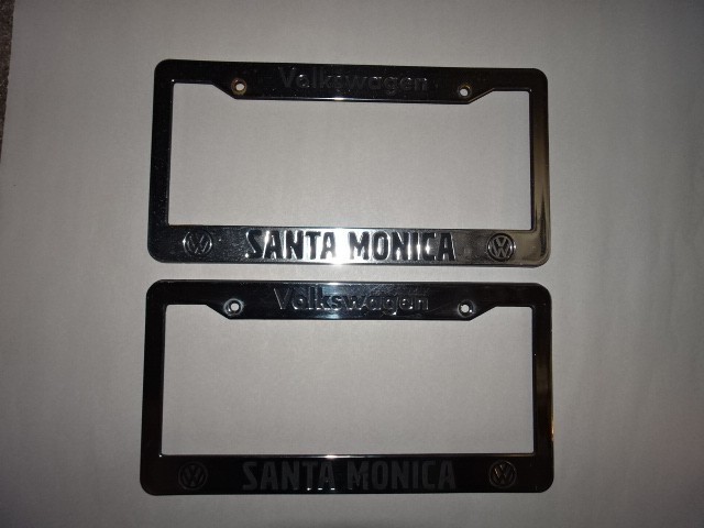 Pair of 2 X Volkswagen Santa Monica License Plate Frame Dealership Plastic