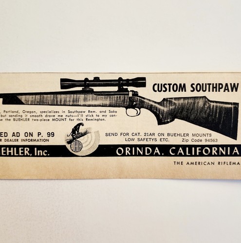 1968 Remington Custom Southpaw Buehler Scope Rifle Advertisement Hunting E91D