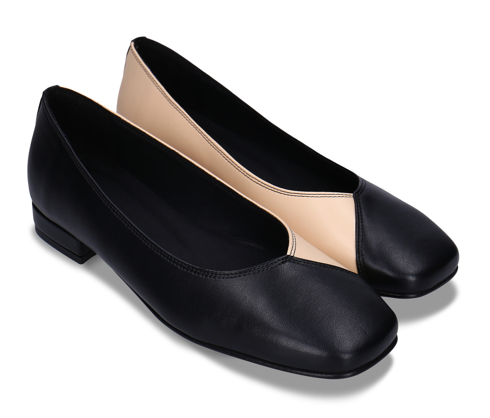 Scarpe basse vegane da donna ballerina in pelle Apple Leather nera beige piatte