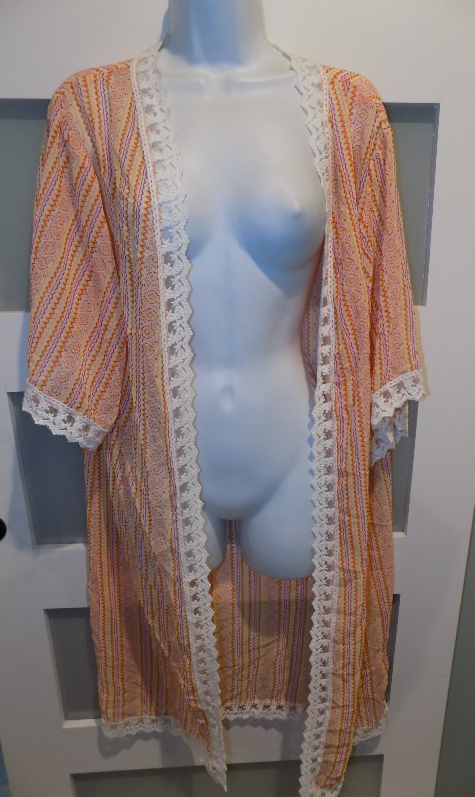 Lularoe Chloe Multi-Color W/Lace Trim Kimono/Cover Up Size S Women's