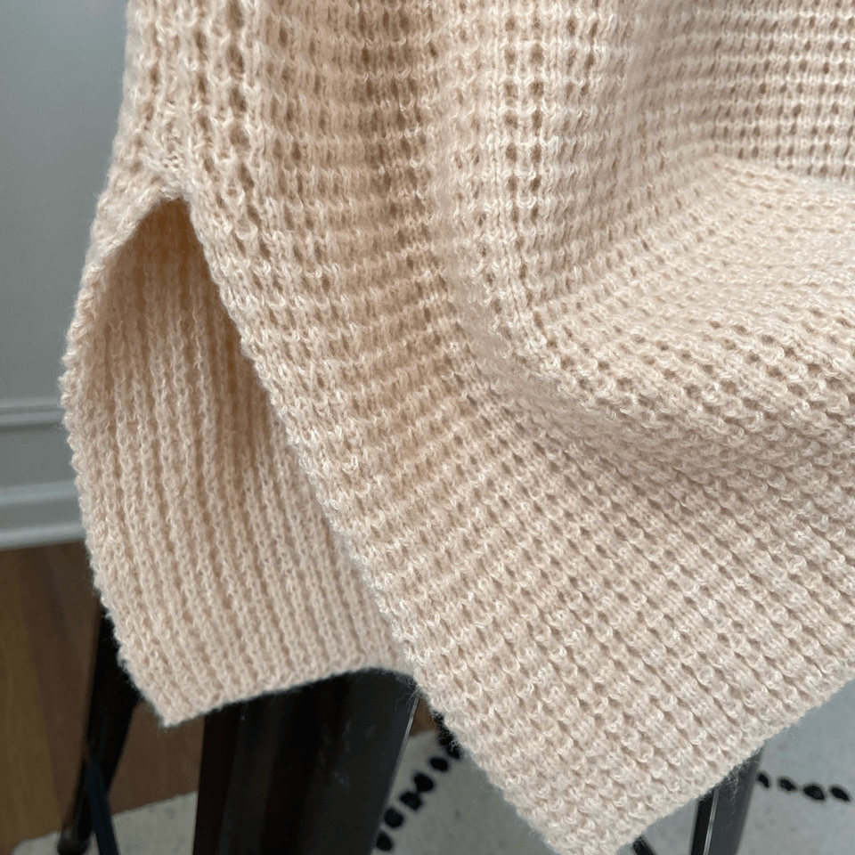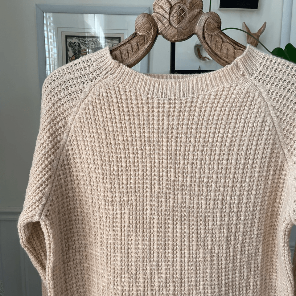 Introducing the Pollina long sleeve sweater tunic from Annah Hariri, the ultimate in modest knitwear. This tunic pairs with coordinating wide leg, pull on pants and cardigan sweater duster in separate listings. Tag size XL 16/18 is a little bit oversize measuring 36 inches shoulder to him with 8 inch vents at each hip for easy movement and 21.5 inches armpit to armpit. Made from a soft and stretchy blend of polyester and elastin, this set is sure to keep you looking stylish all season long. Don't miss out on this must-have set from Annah Hariri. The color is beige, and I think it has a little bit of a peach undertone.