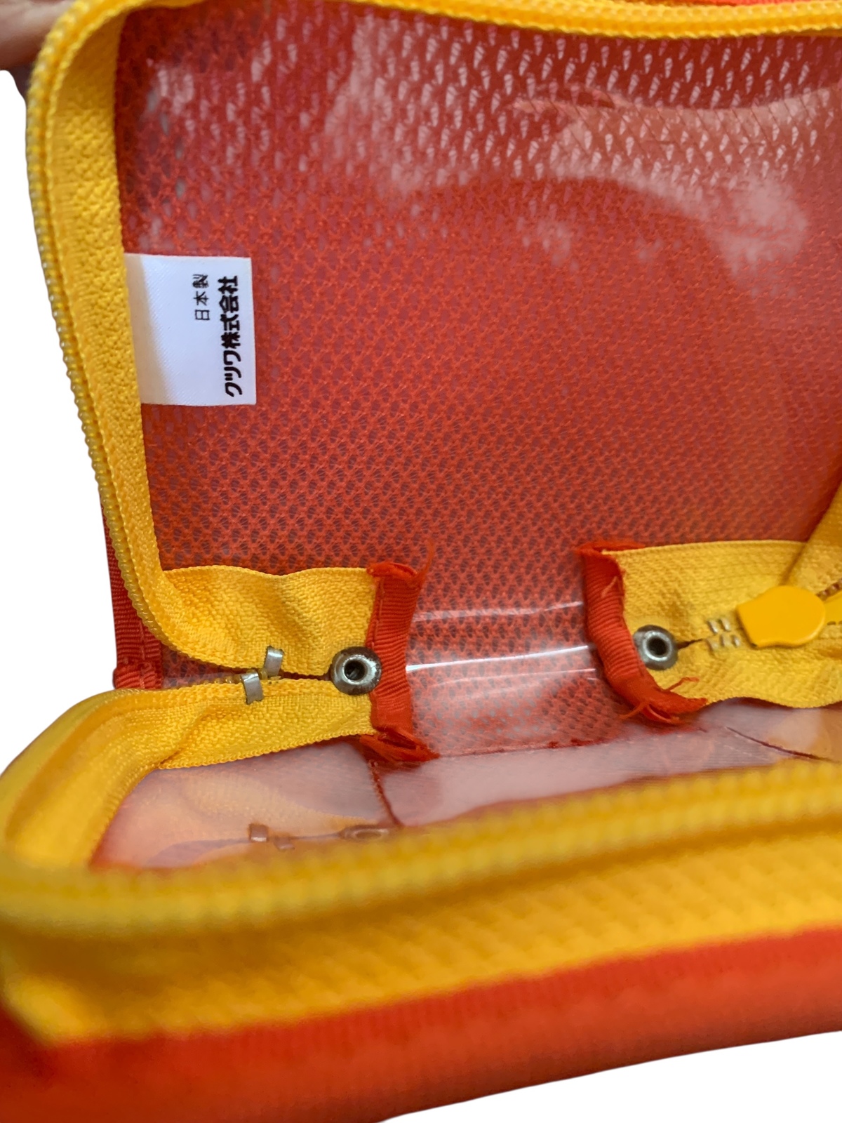 The tag on the front is slightly peeling.