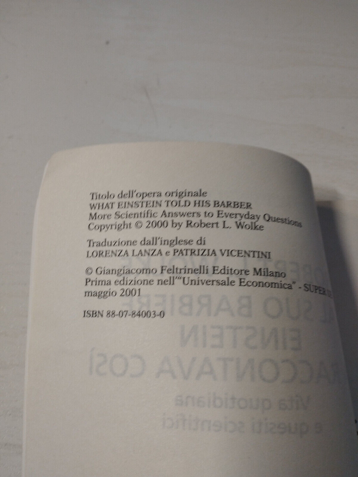 Al Suo Barbiere Einstein la Racontava Cosi Robert L. Wolke 2001 Livre italien
