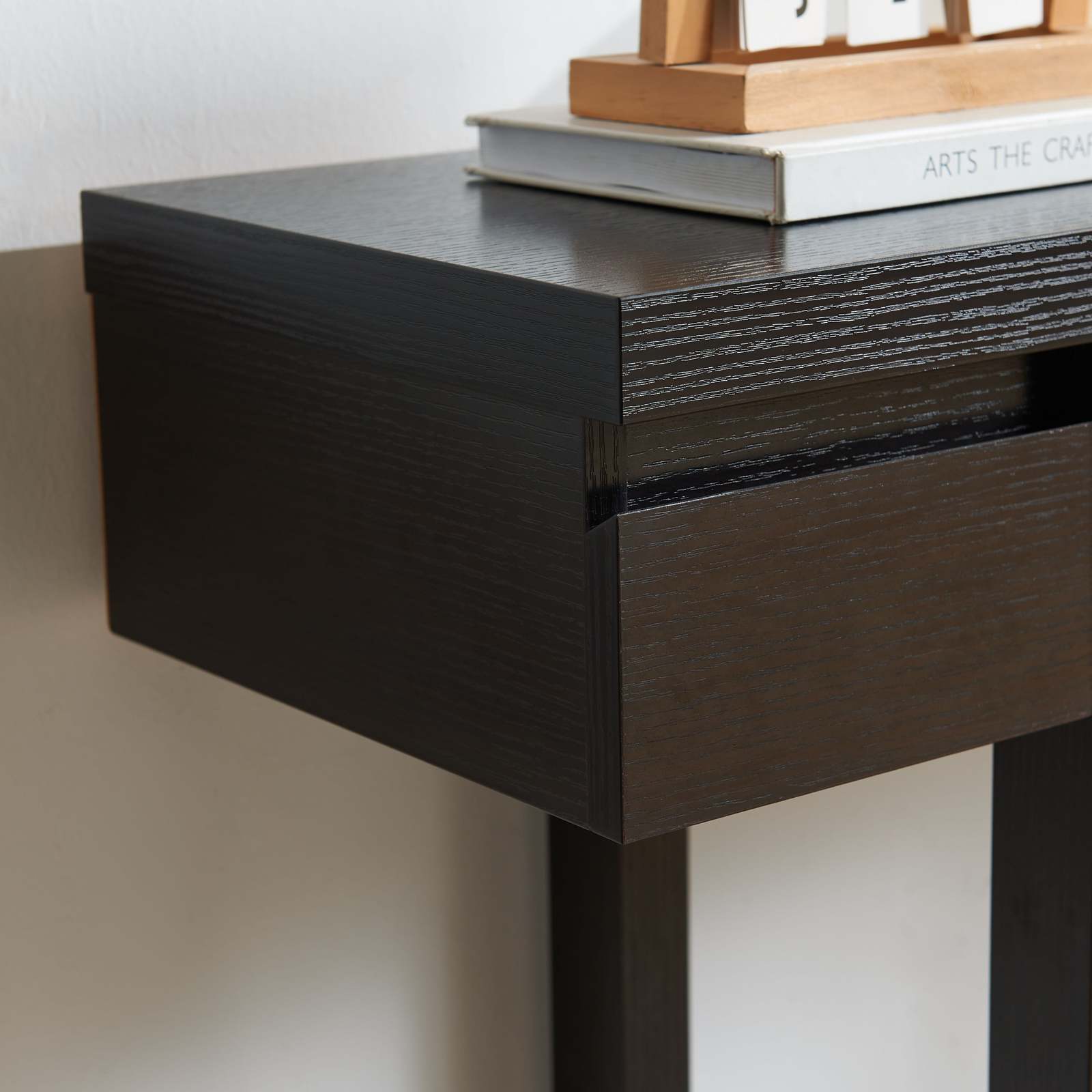 Hallway entryway console table with one drawer one open floating shelf wooden leg frame
