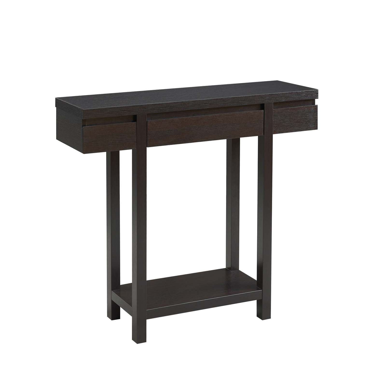 Add table top space and storage space to your entryway and hallway with this compact console table. Featuring a hidden drawer gliding smoothly on pre-assembled metal glides and a tall shelf, this console provides storage and display functions. The slim table top is just wide enough for placing everyday items such as key bowls and purses without allowing clutter to compile.