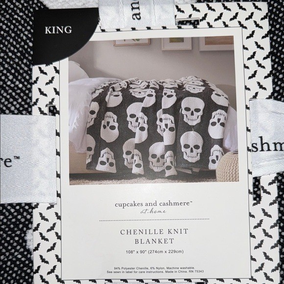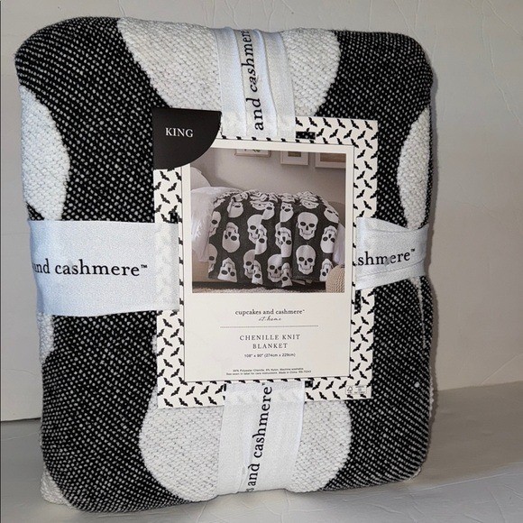 cupcakes & cashmere Black/White Skull Pattern Chenille Knit Blanket King Size