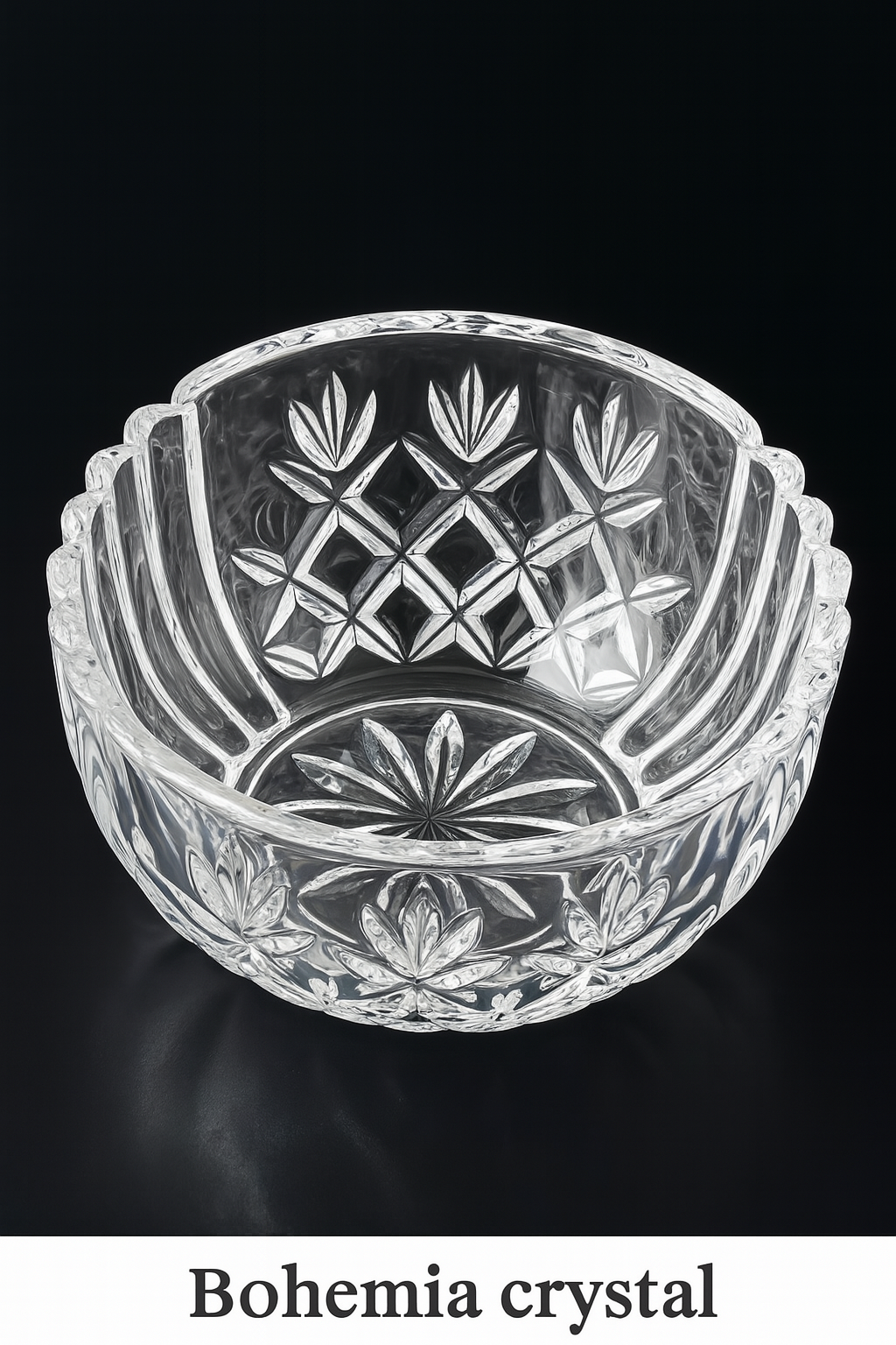 Vintage Bohemia Crystal Bowl – Hand Cut Czech Glass Fruit & Serving Bowl