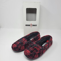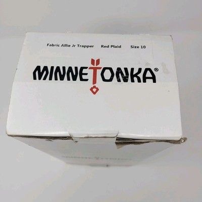 New with box Minnetonka fabric allie jr trapper red plaid slipper size 10.