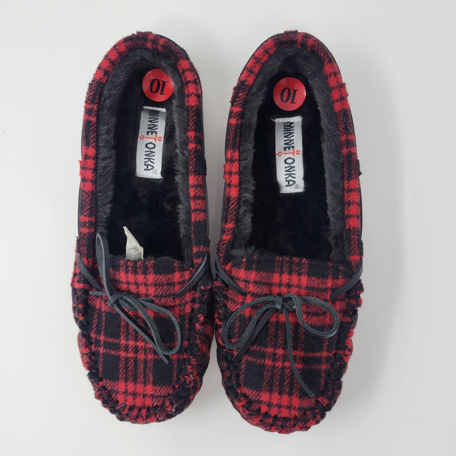 Minnetonka Fabric Allie Jr Trapper Red Plaid Slipper Size 10 NWB