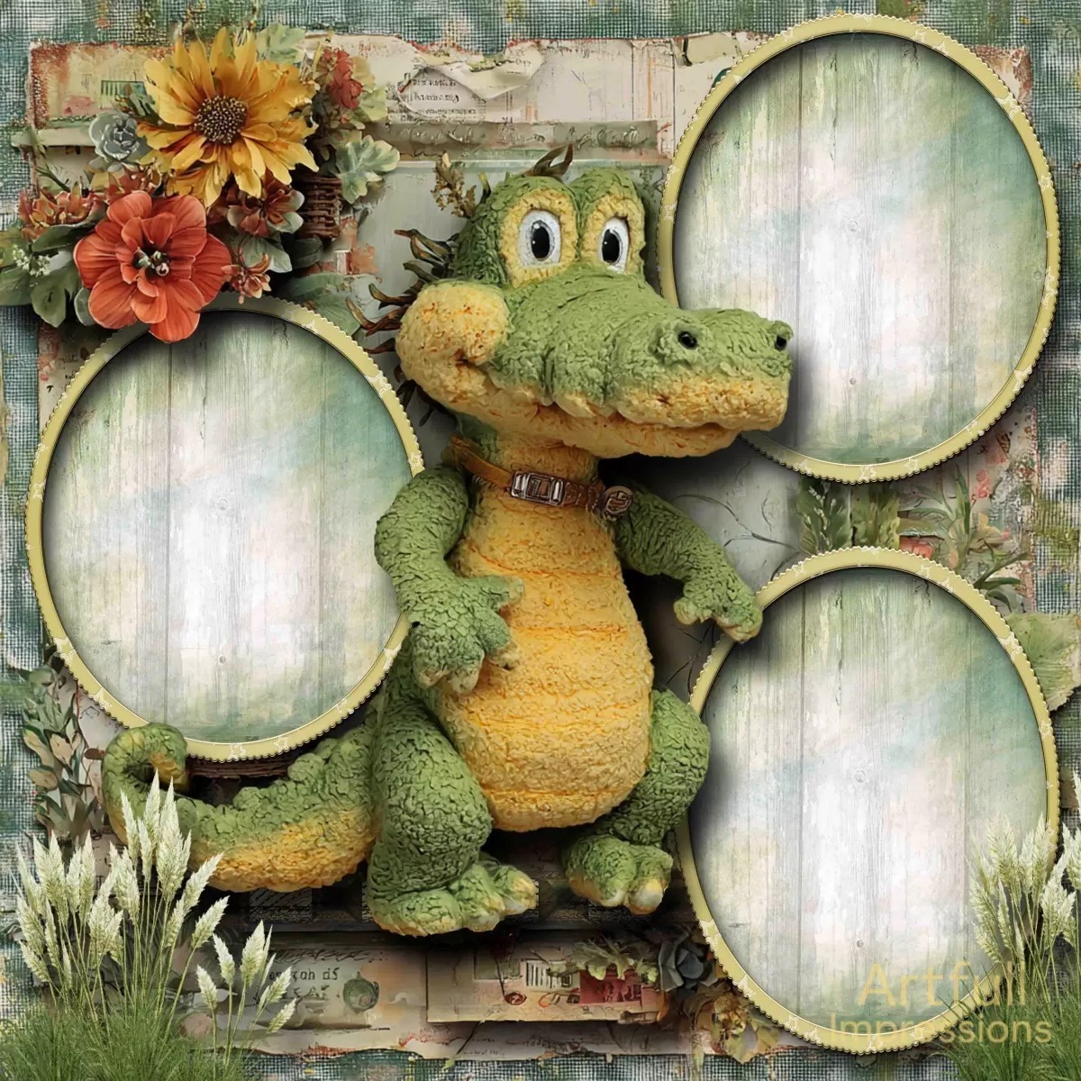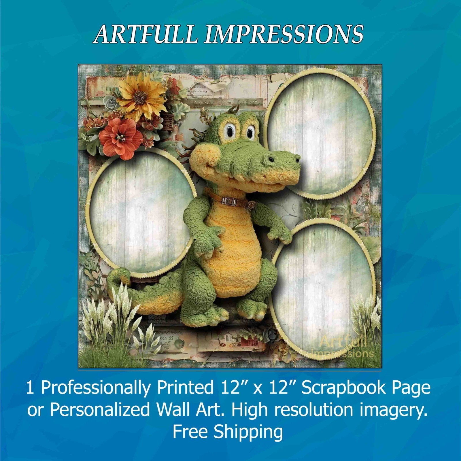 Whimsical Alligator Garden – Personalized Scrapbook Page or Wall Art