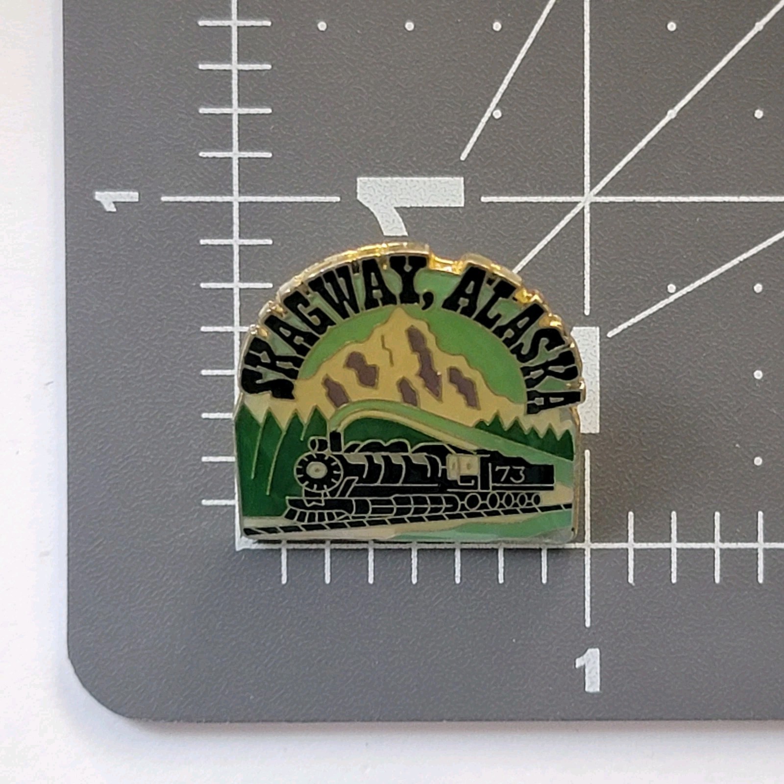 Skagway Alaska Train Mountain Gold Tone Enamel Pin