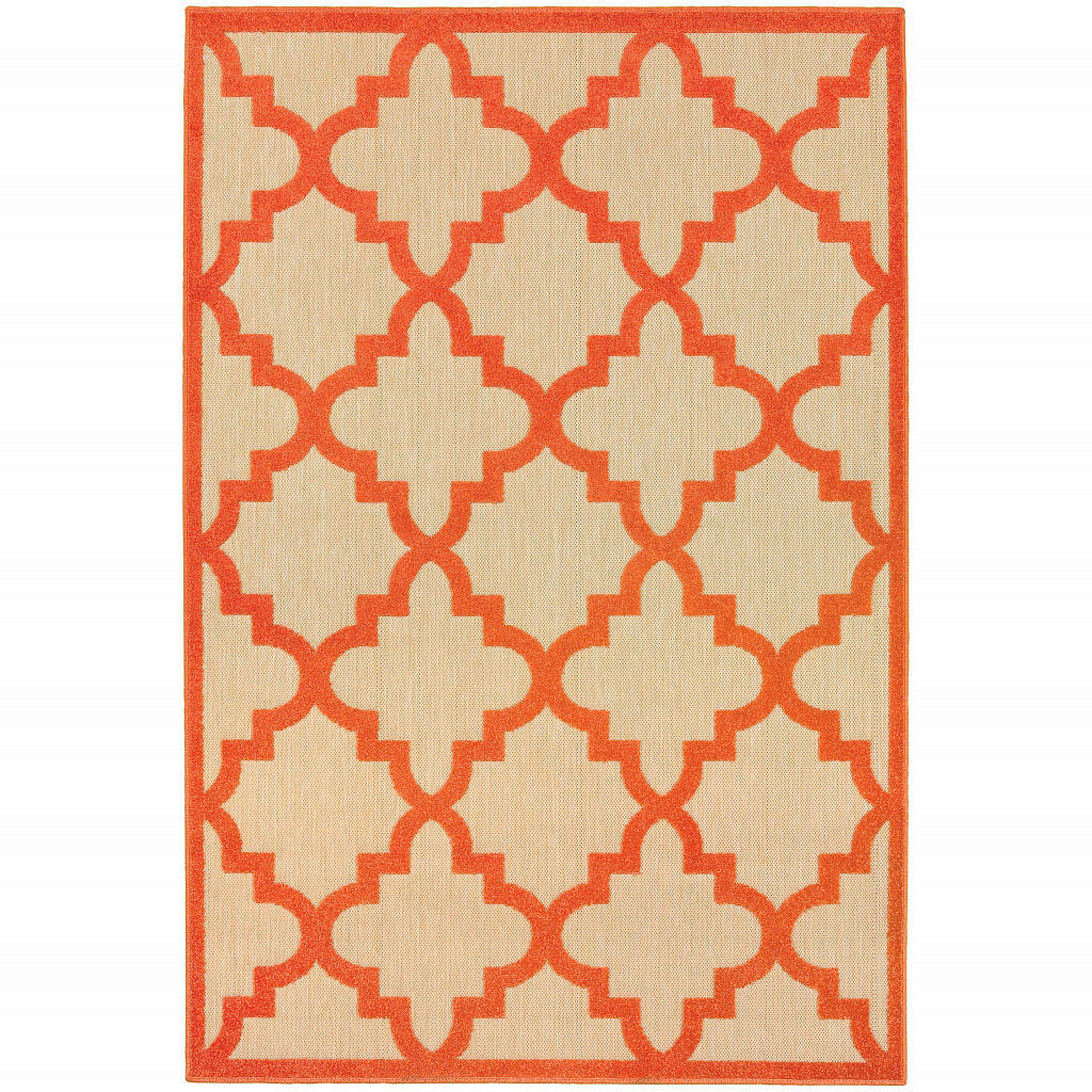 8 X 11 Orange Geometric Stain Resistant Indoor Outdoor Area Rug