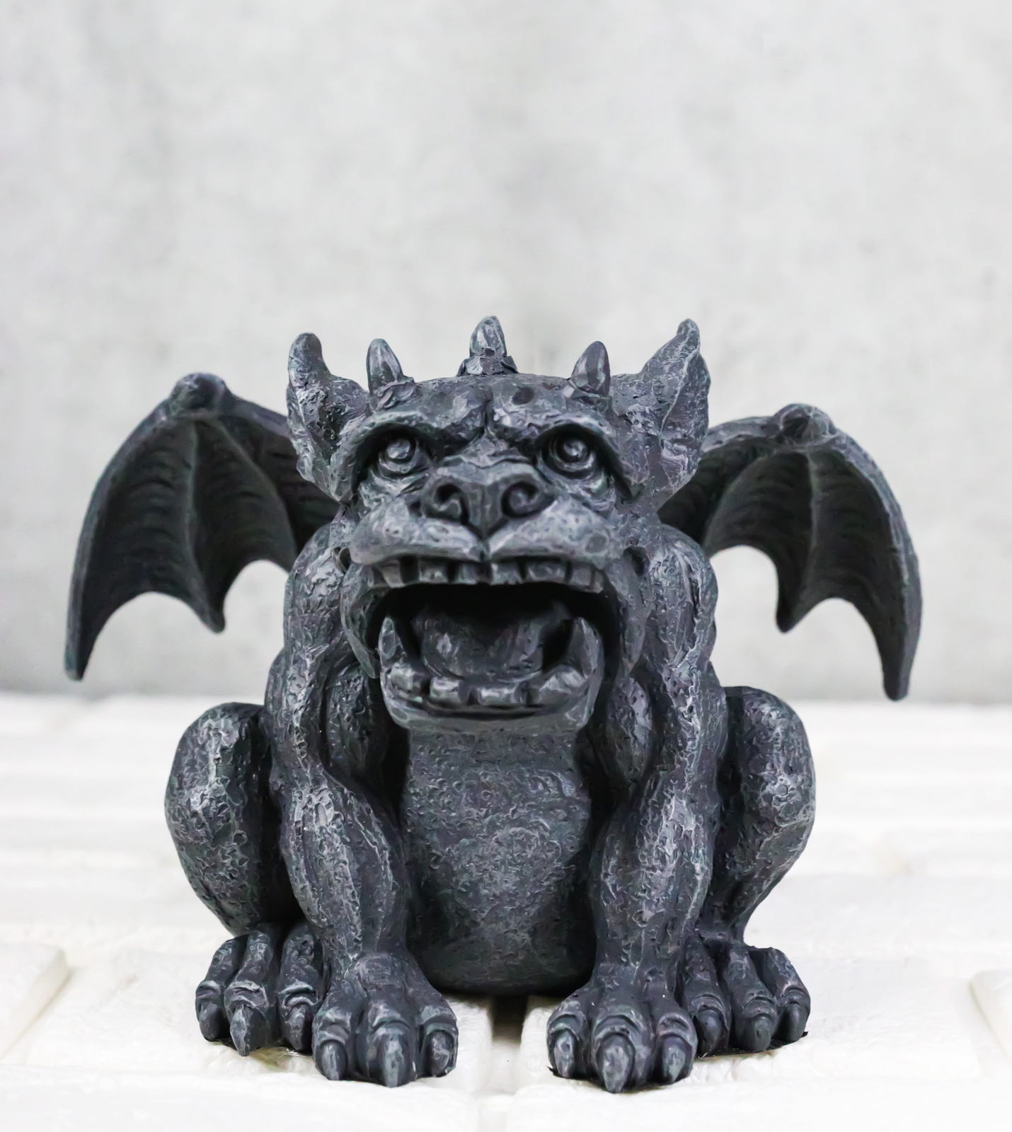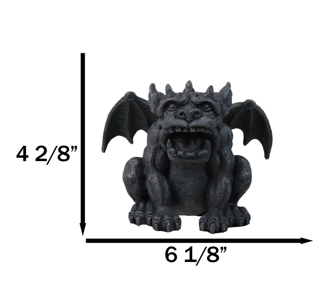 ? This Sabertoothed Fido Gargoyle figurine measures approximately 4.5" tall, 4.25" long and 3" wide.