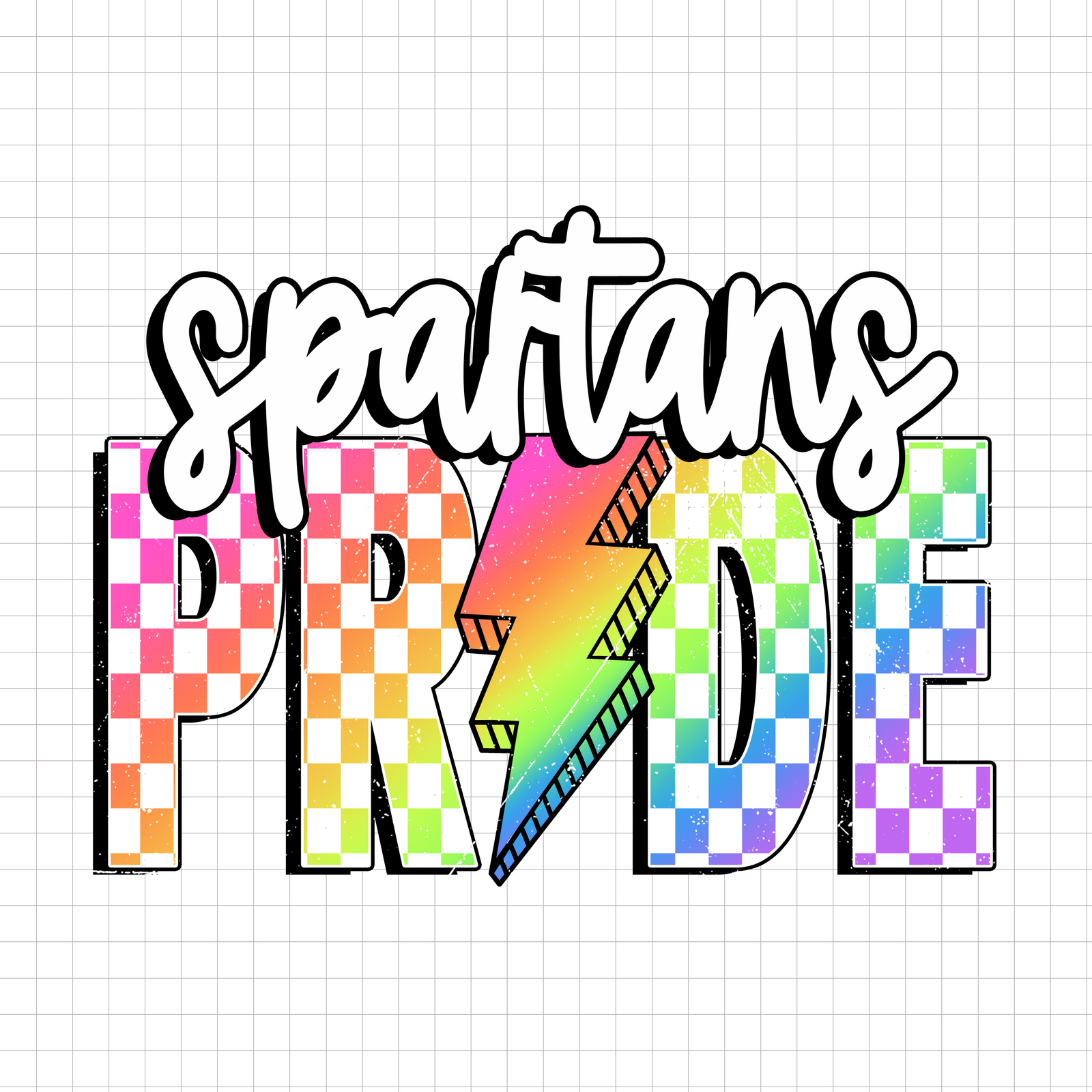 Spartans Pride PNG, Checkered Spartans PNG, Lightning Bolt PNG, Neon Mascot PNG, Trending Design
