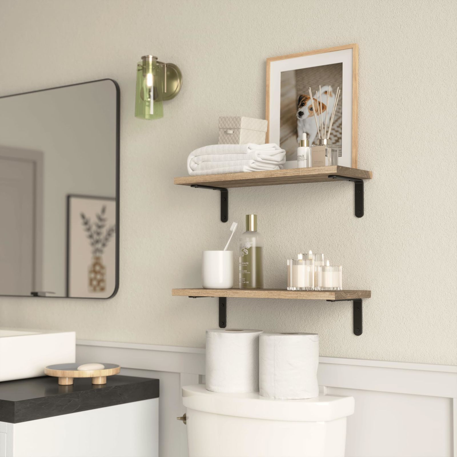With 2 wall floating shelf boards and 4 shelf brackets, RICHER HOUSE Floating Wall Shelf makes DIY decor a breeze. No pre-drilled holes needed. Versatile metal brackets can be mounted on top or bottom, transforming them into wall decor, bathroom, bedroom, kitchen, or plant shelves. Customize your wall space effortlessly.