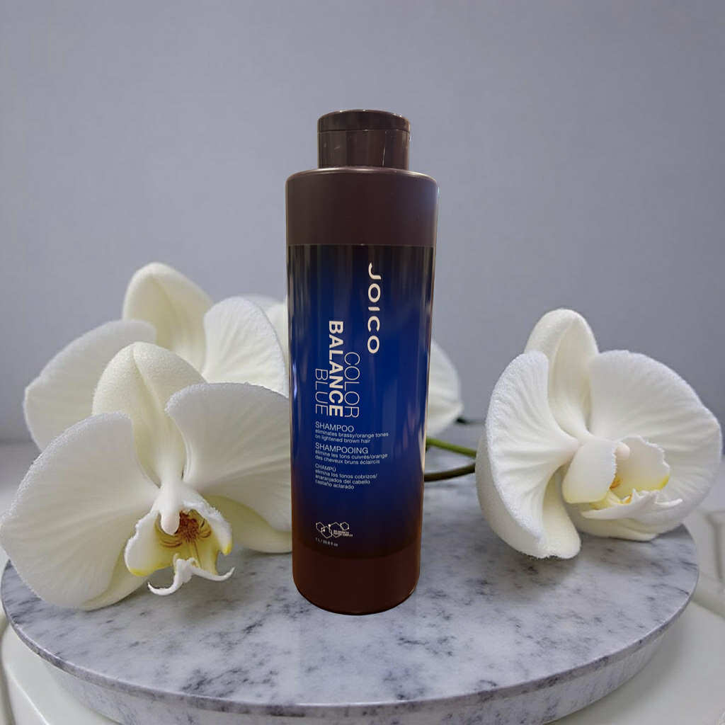 Color Balance Blue Shampoo – 33.8 oz Gently cleanses while depositing blue pigments to cancel out unwanted orange and brassy tones. Infused with rosehip oil, green tea extract, and UV protection for shine and color longevity.