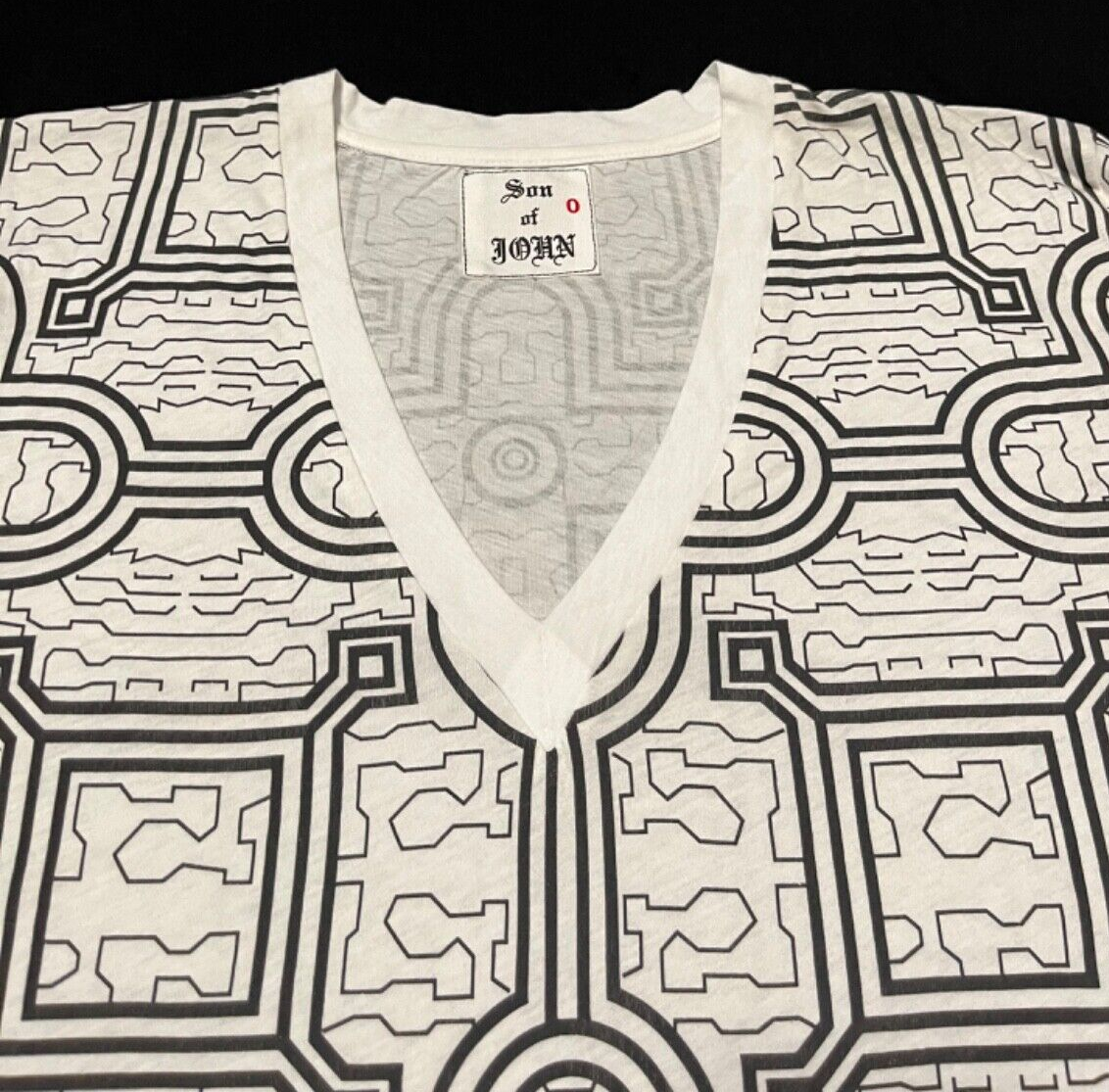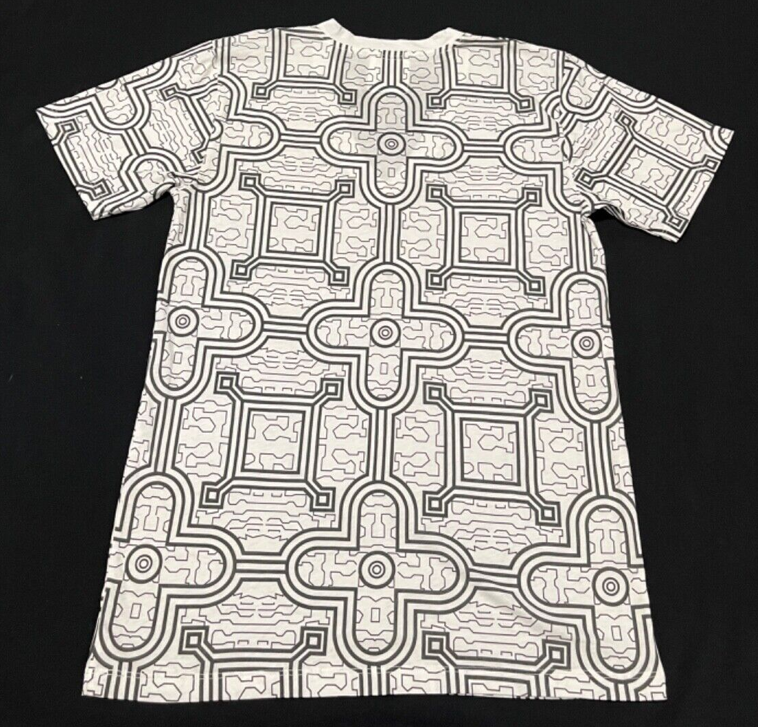 Son of John Men's Semi Sheer White & Black Chipibo Print Graphic Tee Size S NWOT