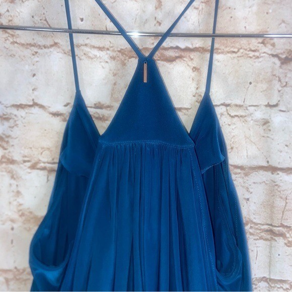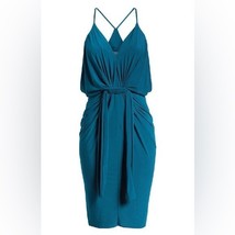 Misa Los Angeles Domino Draped Mini Dress in Indigo Size Small NWT - 96 Polyester 4 Spandex- features a draped, knotted front for a fresh twist on a flirty silhouette. Jersey material, V-neck, racerback, fixed shoulder straps, sleeveless, Front knot detail, draped front and bodice back, Elasticized waist, fitted skirt, pullover style