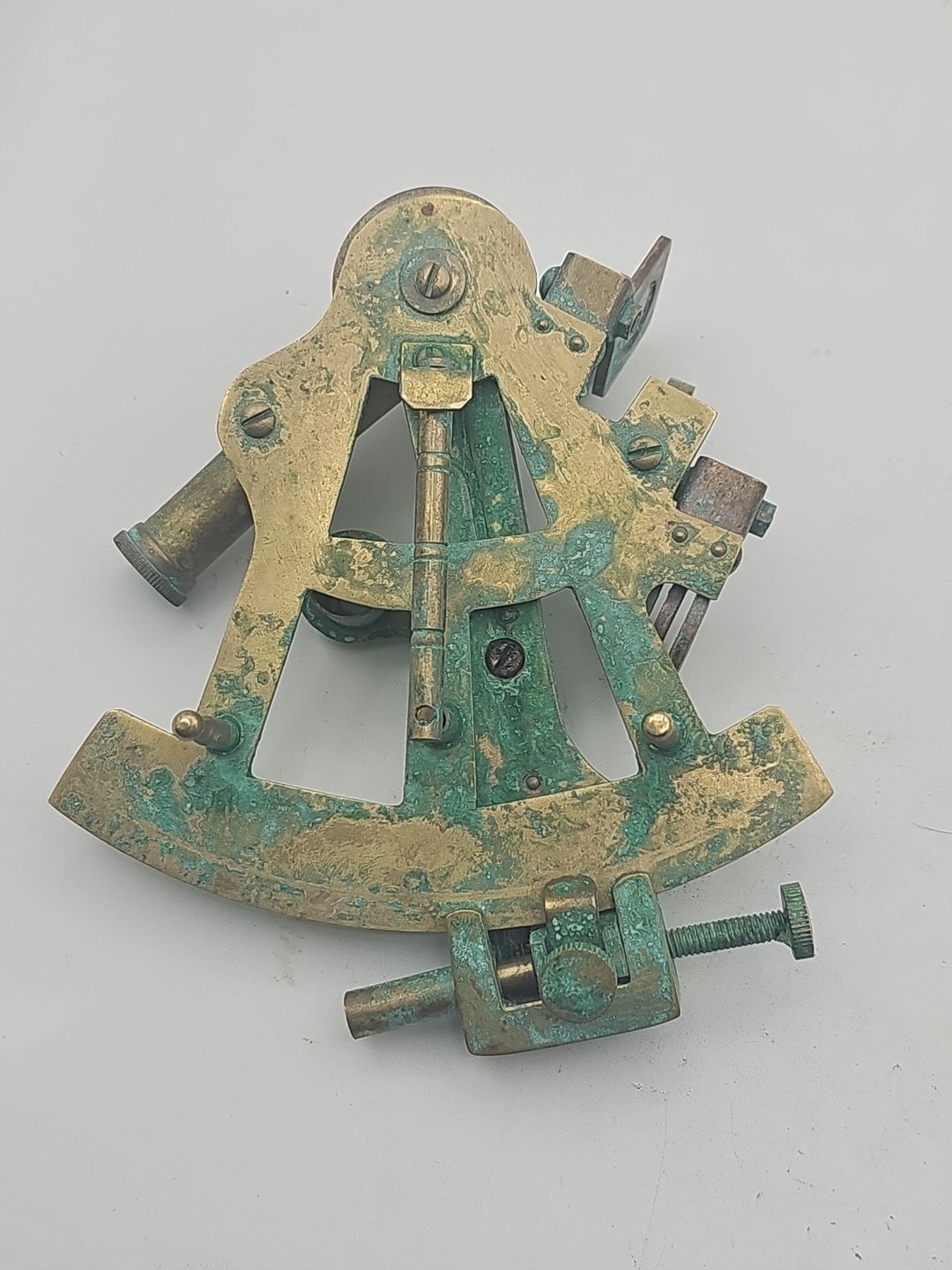 WW2 German Kriegsmarine brass sextant (possibly a small-scale or training model) with personalised engraving:
