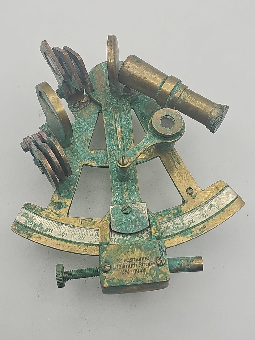 WW2 German Kriegsmarine Brass Sextant Hellmuth Strobe, Köln 1942 Naval Navigate