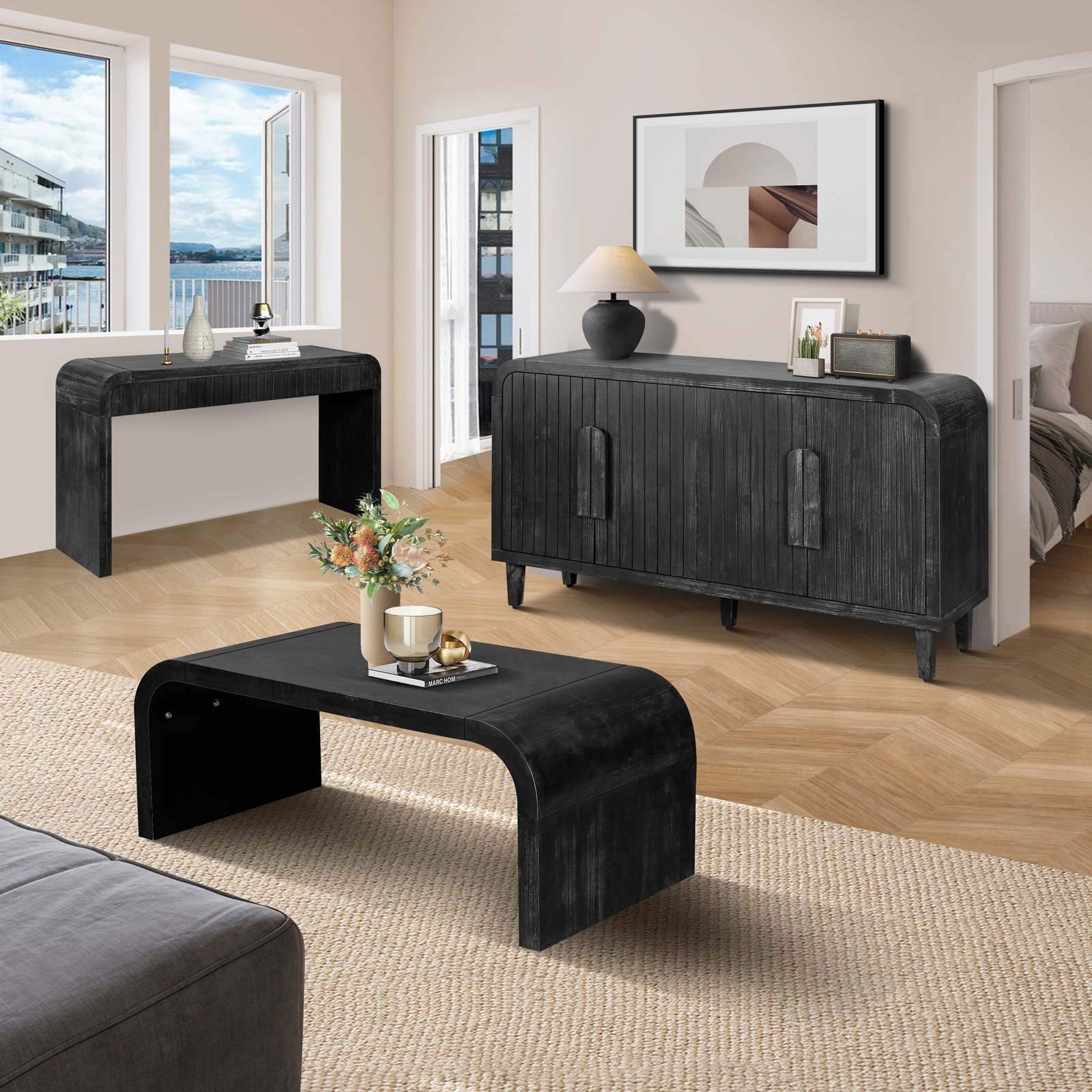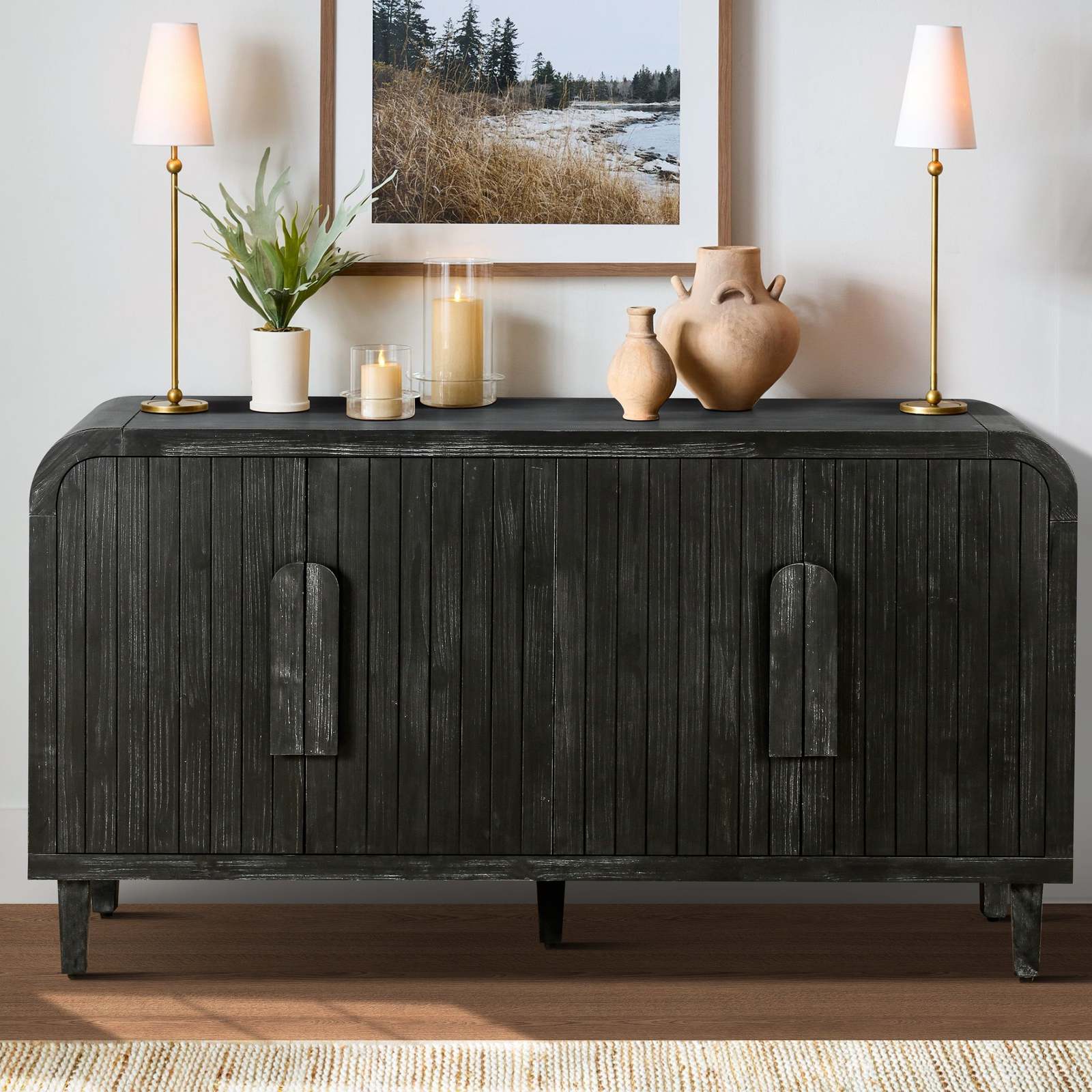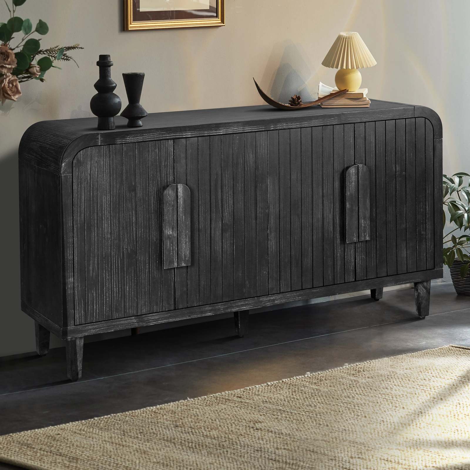 59'' Farmhouse Curved Vintage Storage Sideboard Adjustable Antique Black