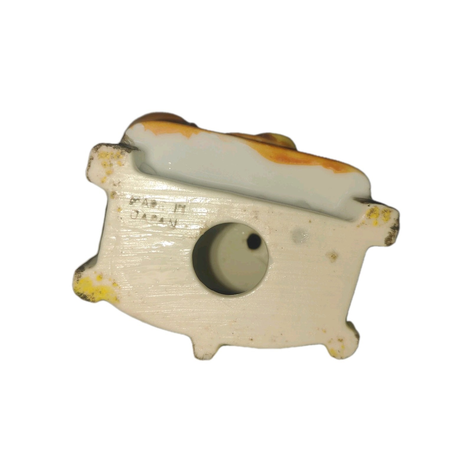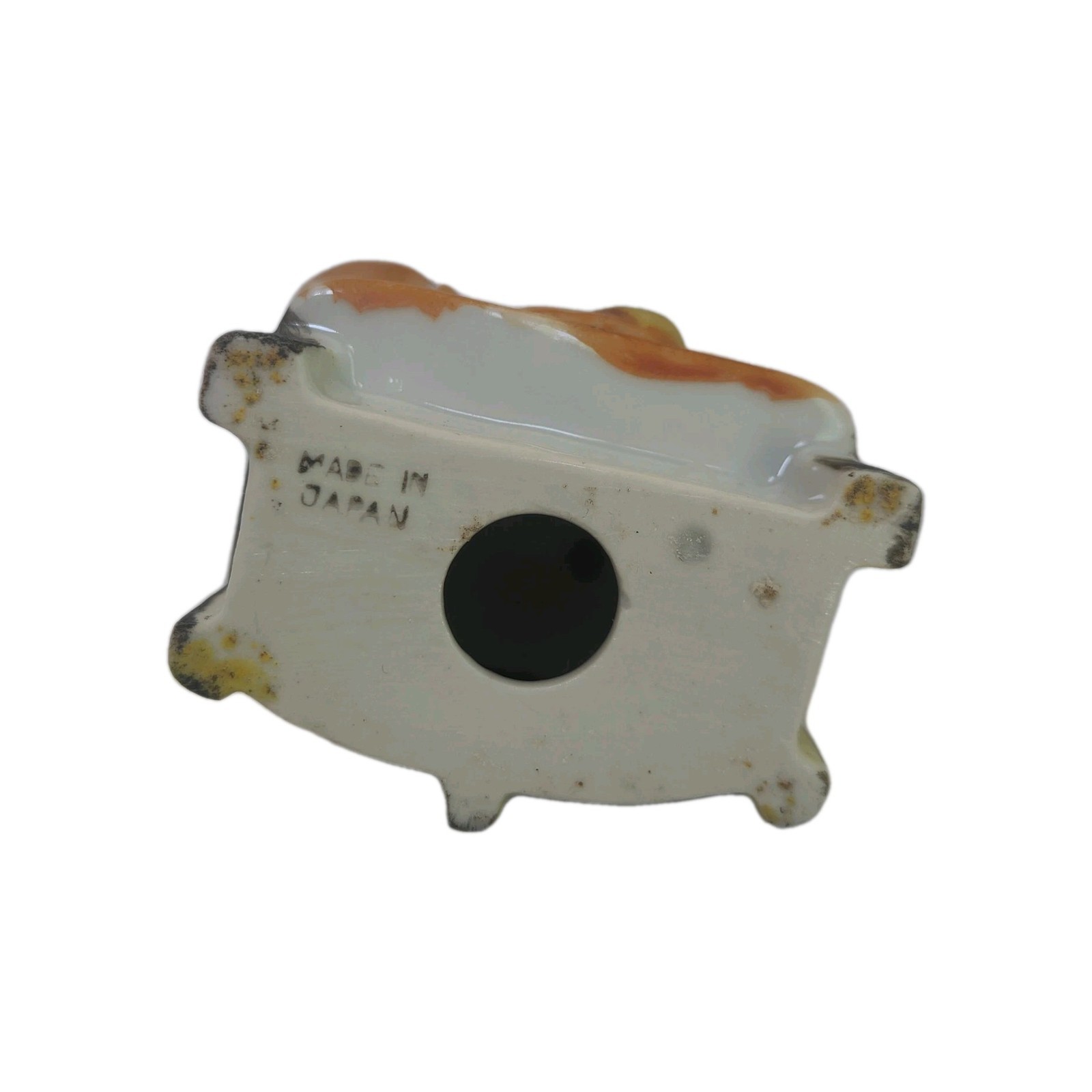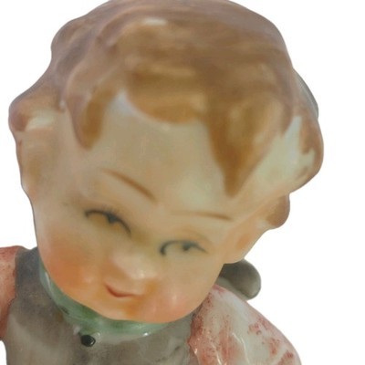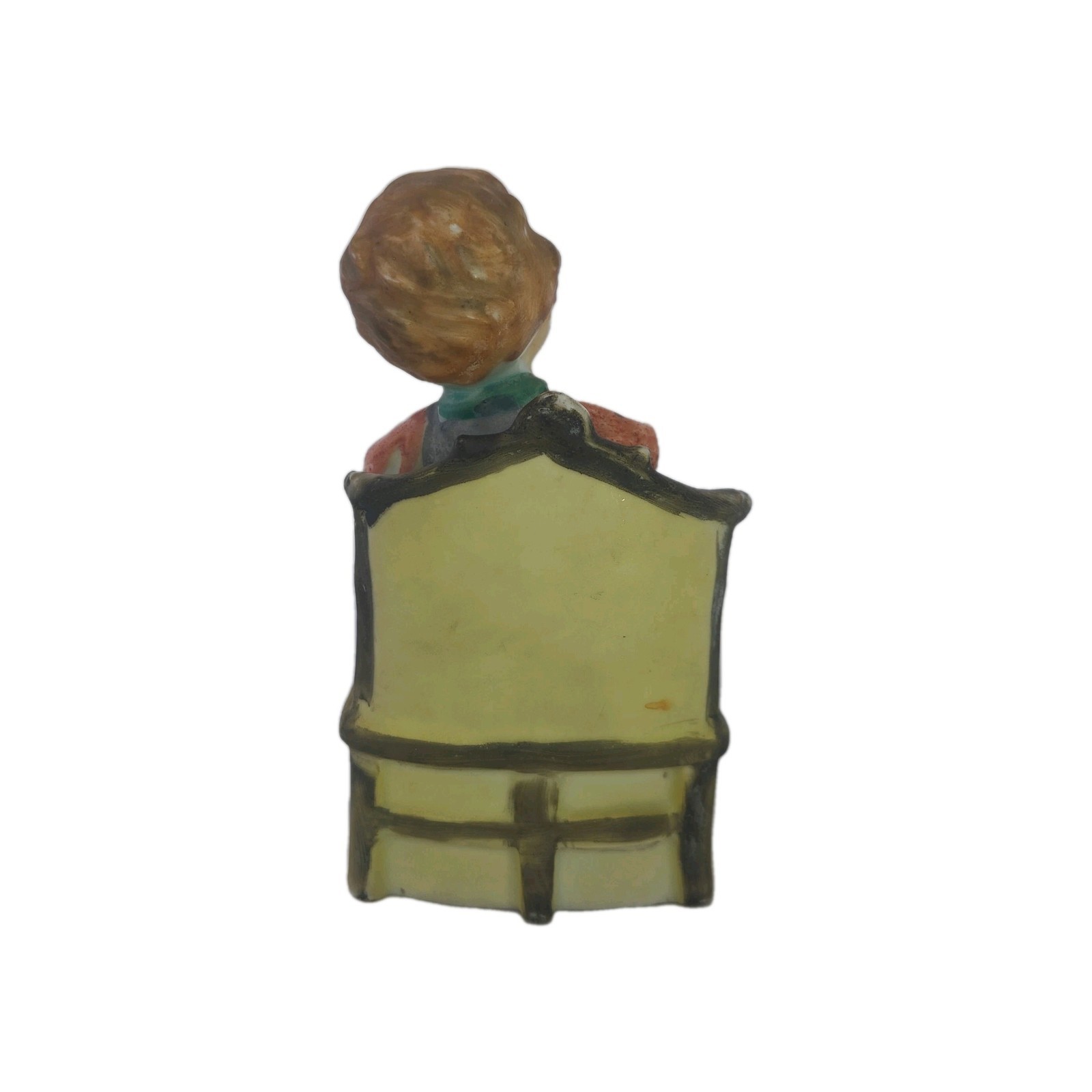 This vintage porcelain figurine depicts a boy eating, inspired by the story of Little Jack Horner. Hand painted with multicolor details, this small figurine captures the essence of fairy tales from the 1950s. Made in Japan, this collectible piece is a unique addition to any room, perfect for adults who appreciate whimsical and nostalgic decor. There is a superficial crack behind the boy, probably during firing. Does not go thru the other side. See photos.