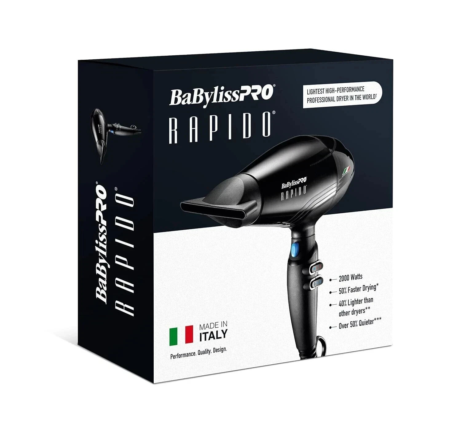 BaBylissPRO Hair Dryer, Nano Titanium Rapido 2000-Watt Blow Dryer, Hair Styling Appliances, Black, BRAP1