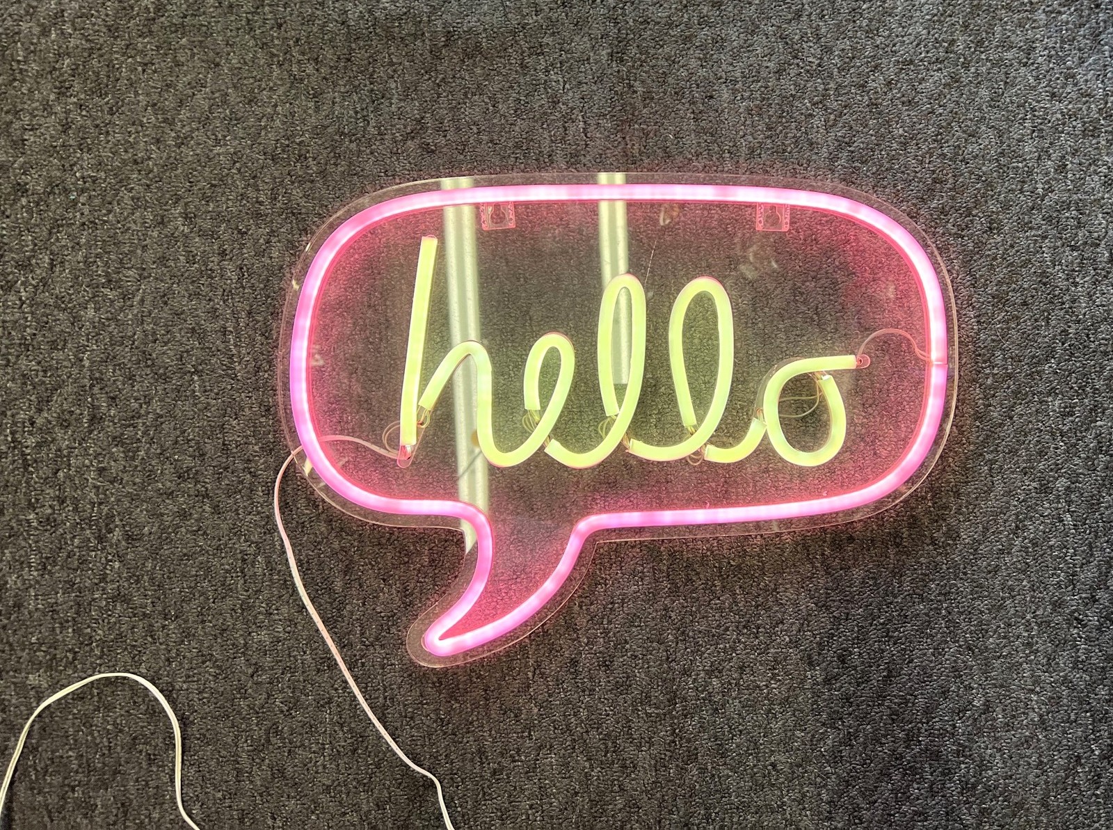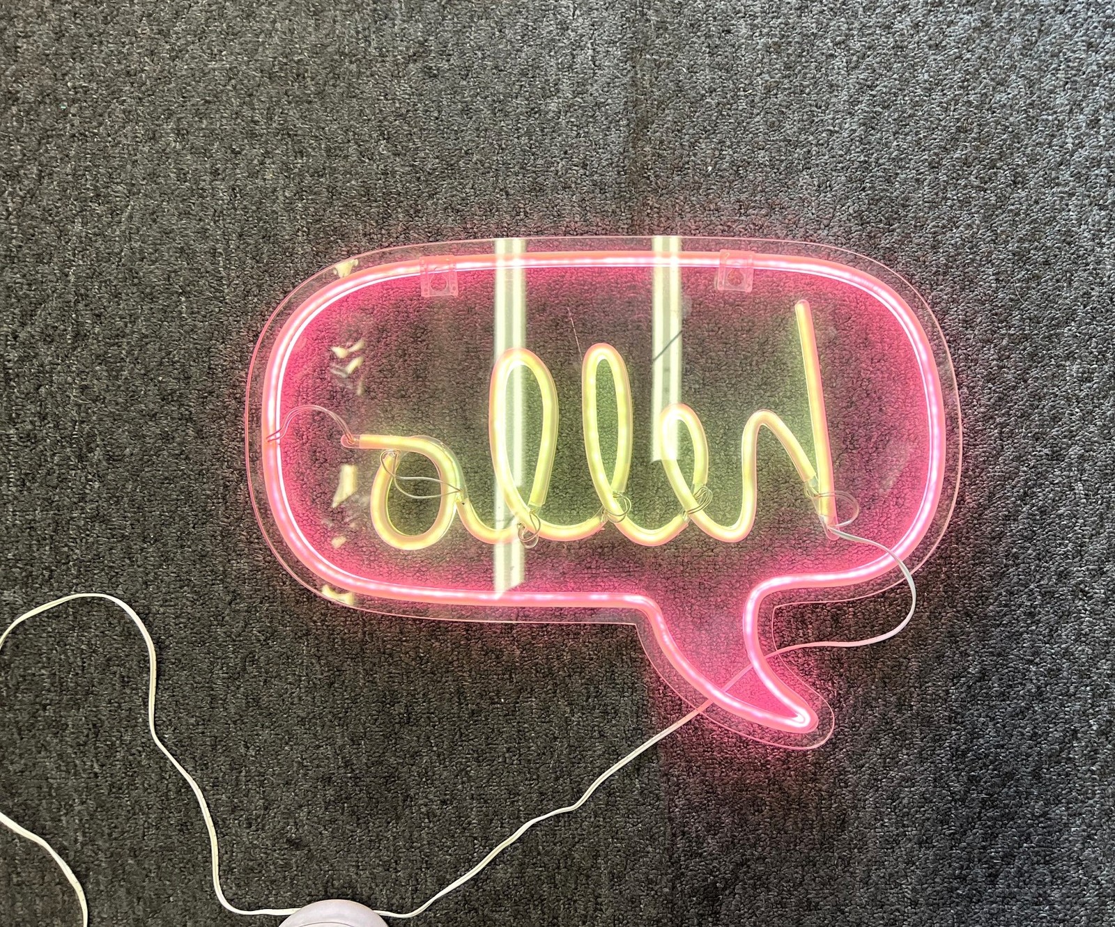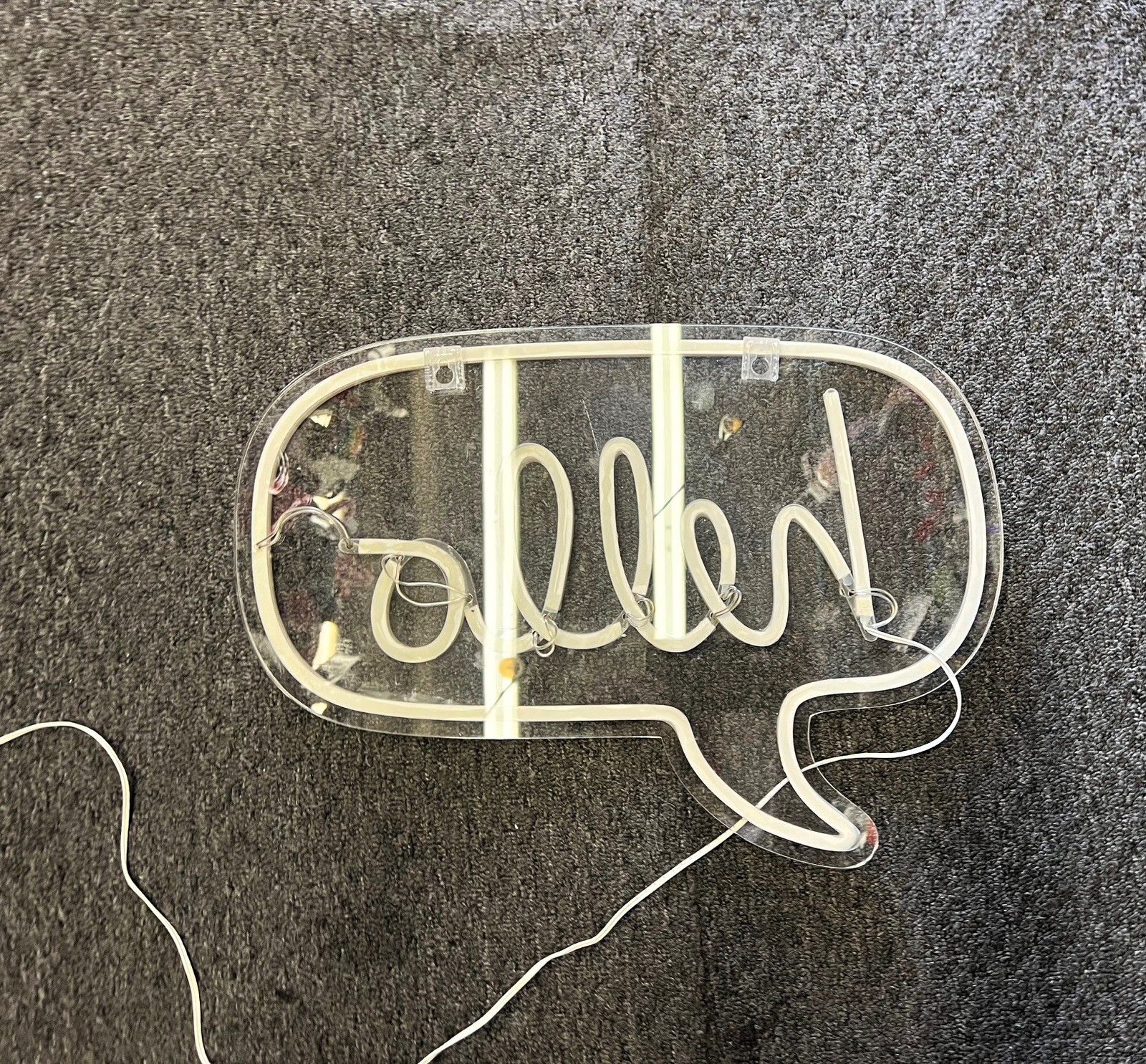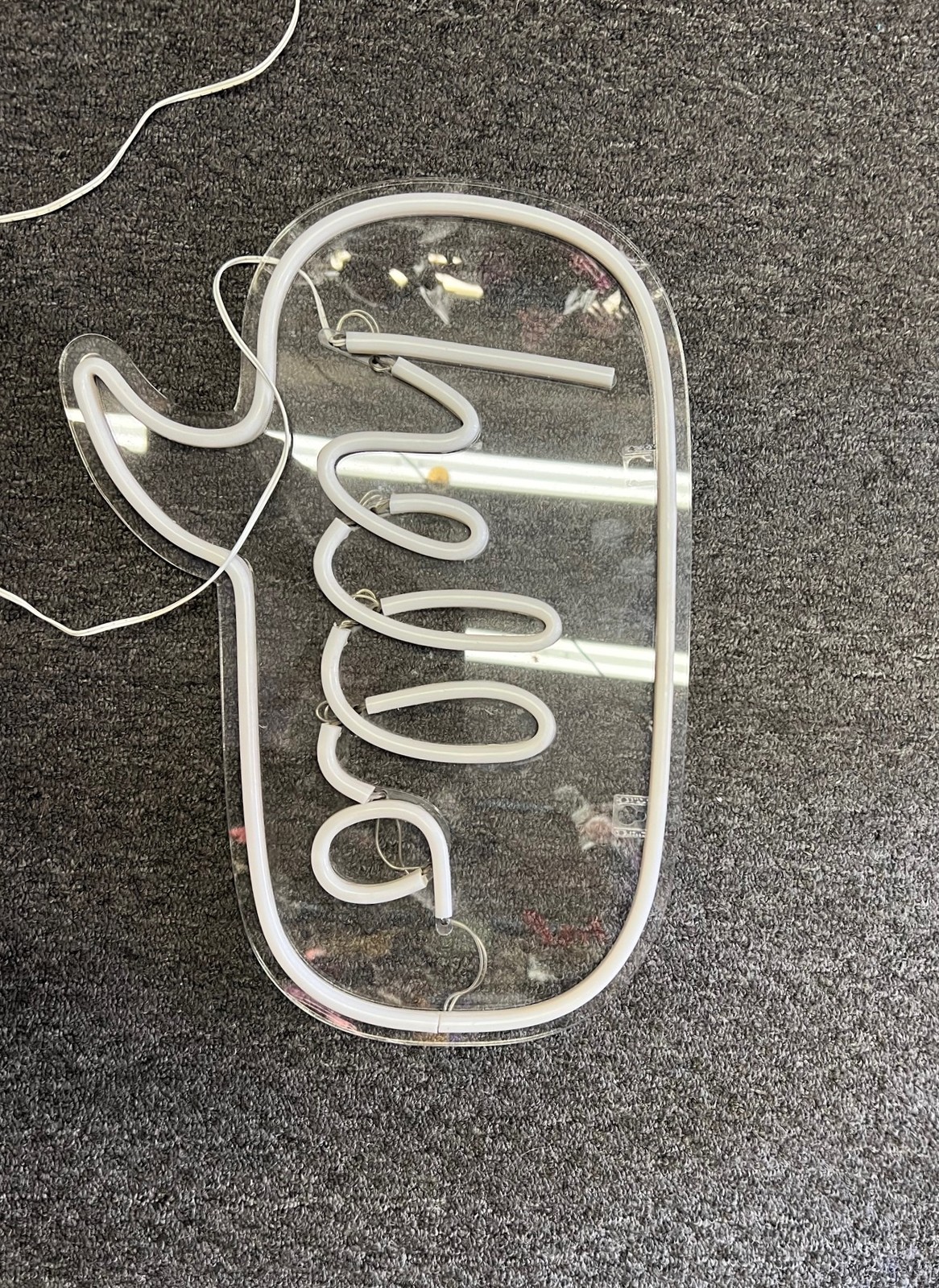 ?S??A??L??E? HELLO ?? NEON LIGHT ?BUY NOW??? ?Color: White ?Material: Acrylic ? ? HELLO Large NEON LAMP ?? ???CONDITION??? ?Pre-Owned GEM ??/Gently Used???/Good Condition?? ?UNIT Fully Tested for Functionality Everything Works? ??May Contain Minor Scuffs from Normal Wear Tear? ?Please Refer to Photos for Desc?