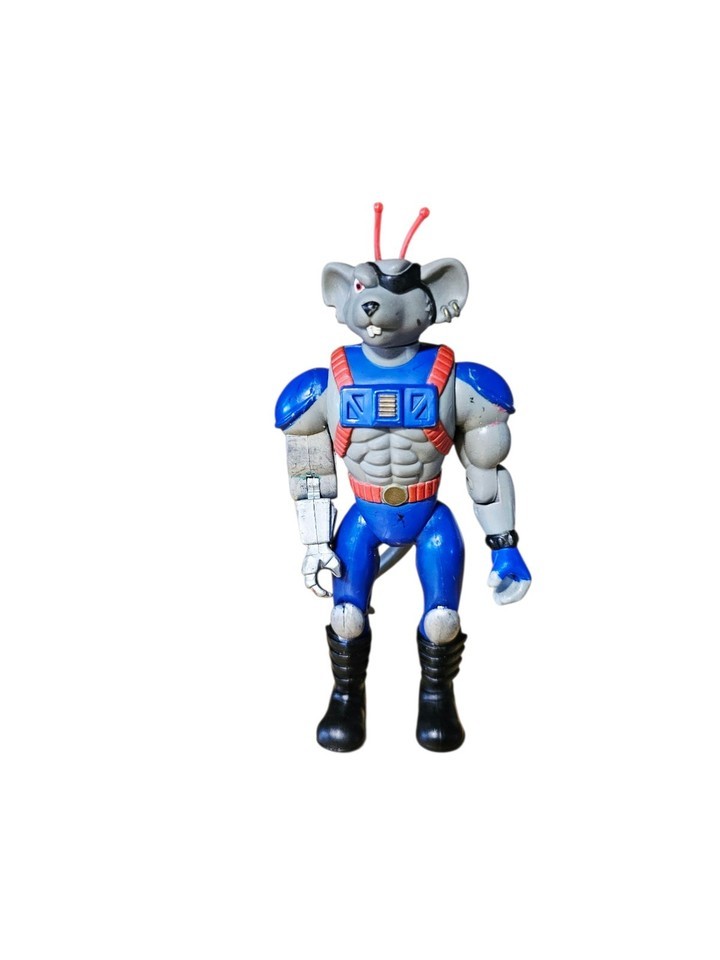 The Vintage Galoob Biker Mice from Mars Modo Action Figure from 1993 is a collectible toy based on the popular animated TV show. This multicolor PVC/plastic figure features the character Modo, a biker mouse with a blaster, in a 1:12 scale. Made by Galoob, this original action figure captures the essence of the cartoon and TV character theme, making it a sought-after piece for fans and collectors of vintage toys from the 1990s.