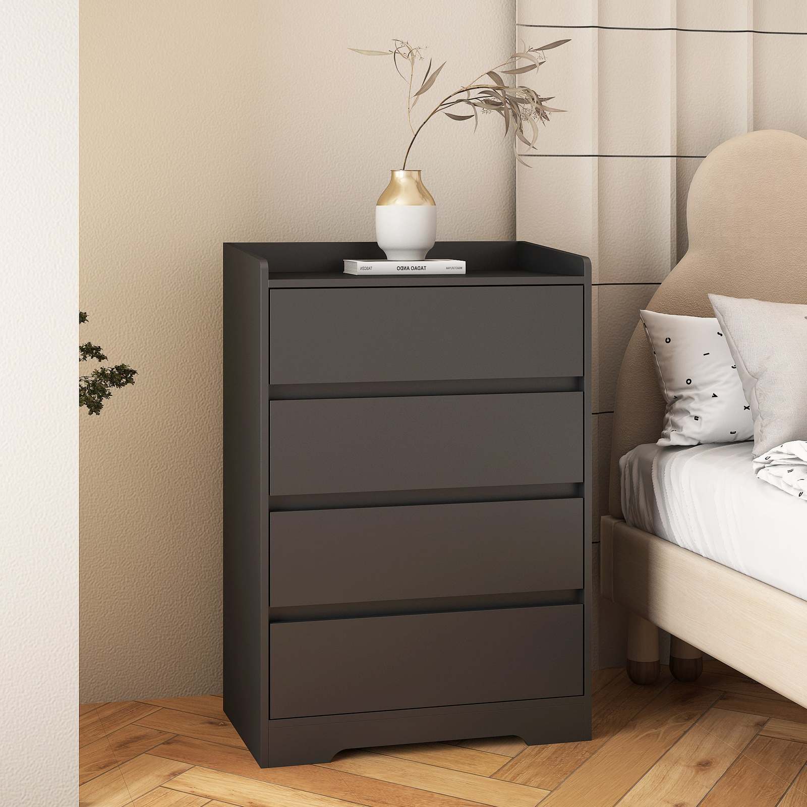 Black 4 Drawer Dresser - Waterproof Modern Wooden Chest for Bedroom