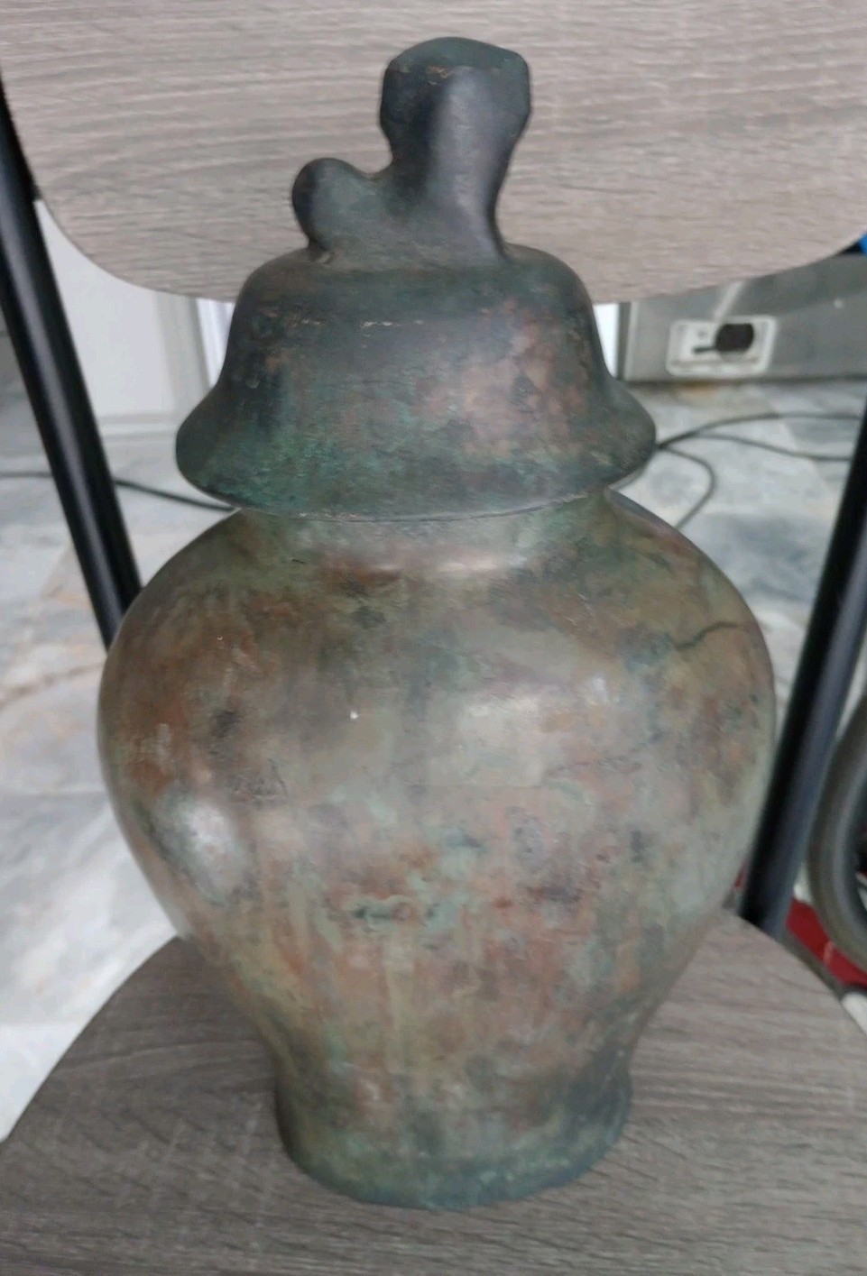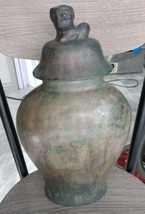 VTG Maitland Smith Vase Heavy Bronze Lidded Mantel Urn Vase Fu Dog Lid 15.5"