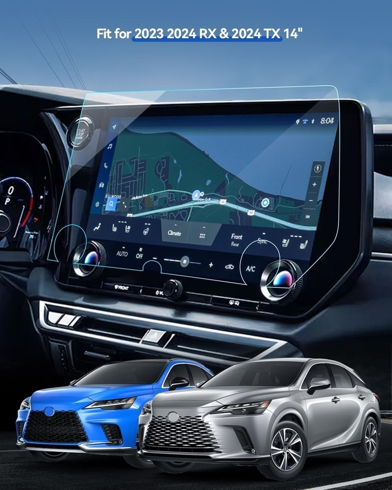 Upgrade your Lexus RX 350 with our custom-fit screen protector, designed specifically for 2023-2024 models, including RX350, RX450h+, RX500h F SPORT, and RX TX 14'' displays. Crafted with advanced anti-explosion tech, it extends your screen?s lifespan while preventing fingerprints and smudges with Nano protective film. Enjoy vibrant visuals with 99% HD clarity and a smooth touch experience, all while ensuring easy installation and residue-free removal. Rest assured, we stand behind our quality with comprehensive after-sales support. To ensure fast and reliable delivery, we work with multiple fulfillment partners and suppliers. Depending on availability and location, your order may ship from different warehouses or arrive in packaging that varies from item to item. Tracking details are typically provided shortly after shipment, and customer satisfaction remains our top priority. Please note that due to carrier policies and regional regulations, certain items may not be eligible for delivery to specific states or territories.