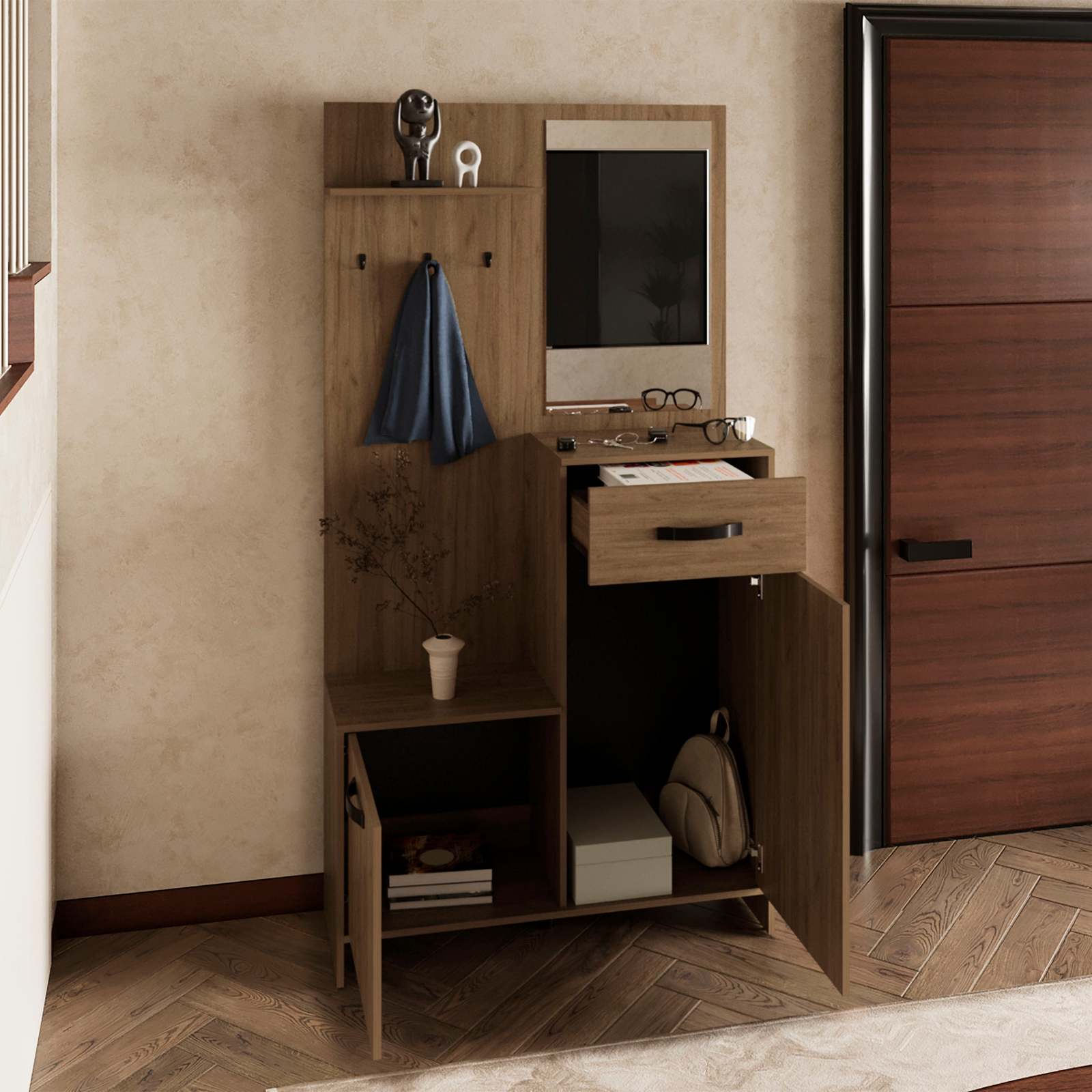 Large and Small Cabinets: Offers versatile storage options for a tidy entryway.