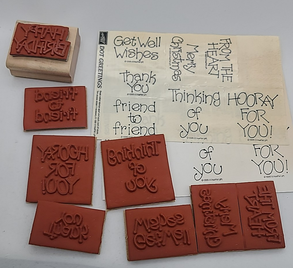 Read! NOS Stampin Up Dot Greetings Set 8 Mounted Rubber Stamps '95 junk journal