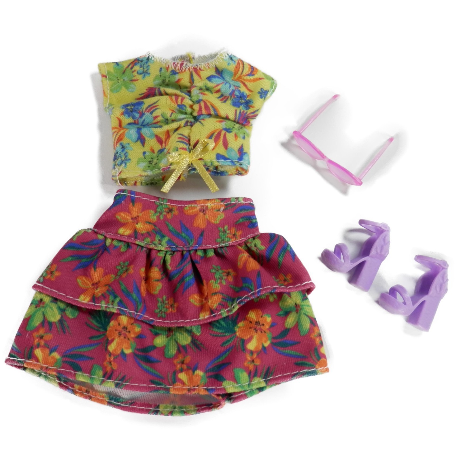 Includes skirt, top, shoes, and sunglasses for Barbie