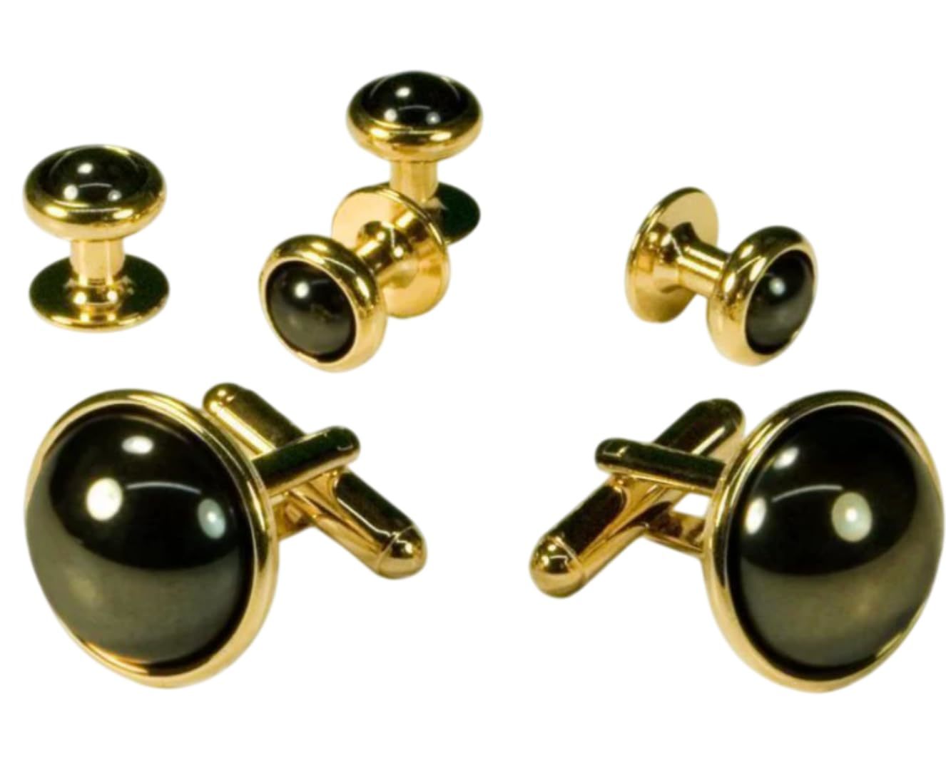 Hematite Dome with Gold Trim Studs and Cufflinks Set