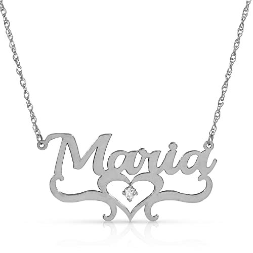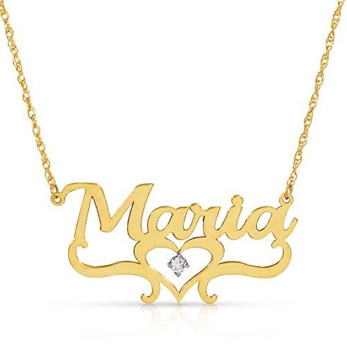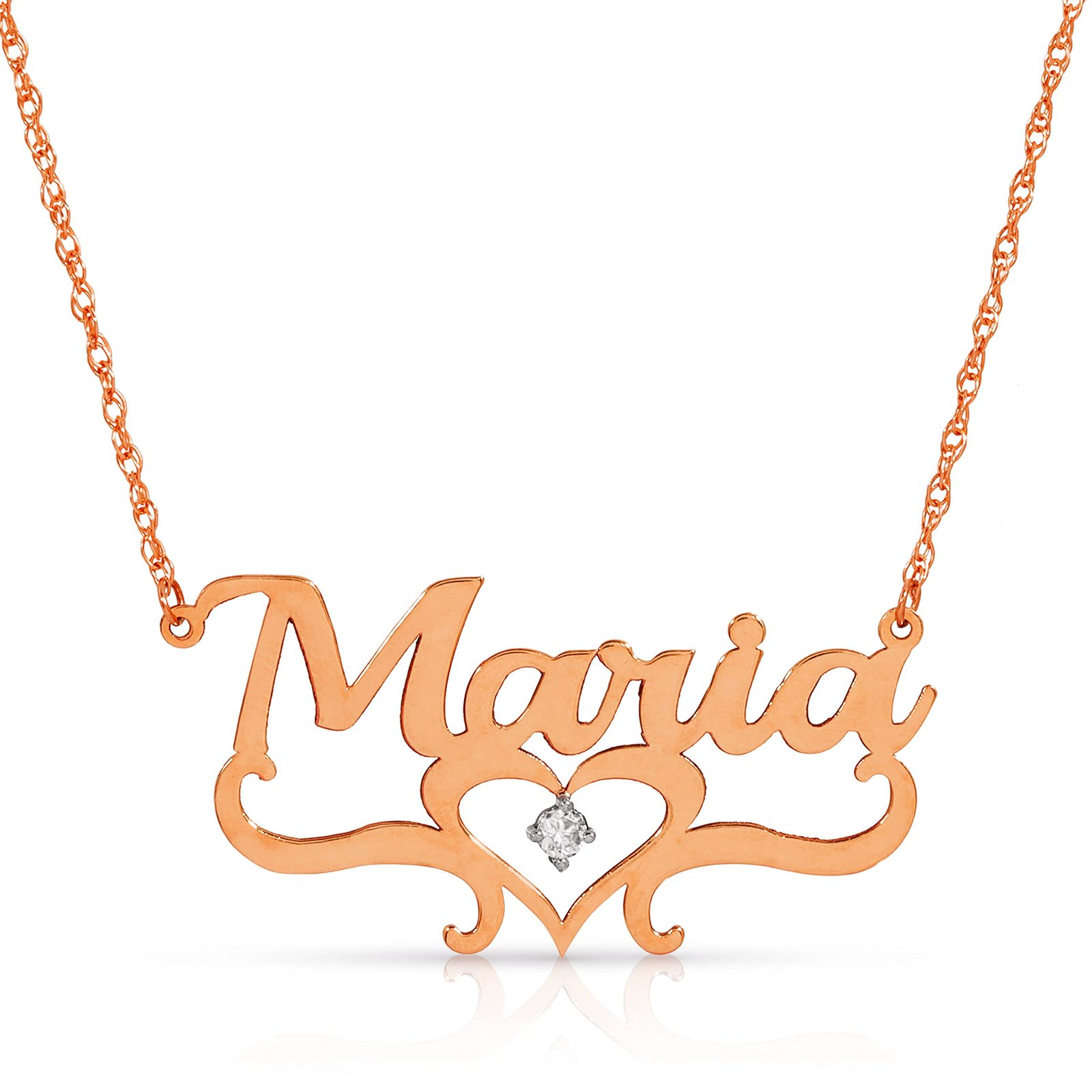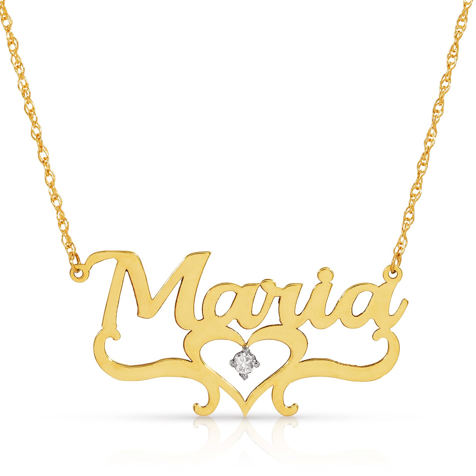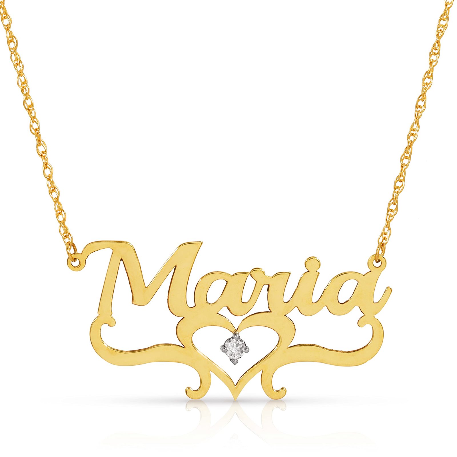 14K. SOLID GOLD NECKLACE PERSONALIZED NAME WITH DIAMOND HEART PLAYBALL FONT